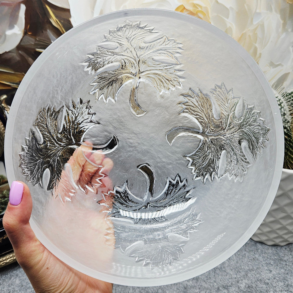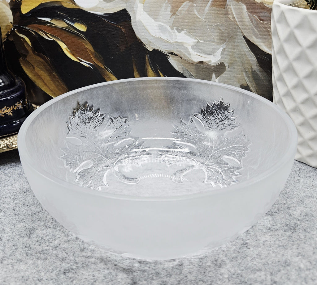 Schale aus mattiertem Kristall mit Blattornament - ein Hauch von Eleganz (21cm.)