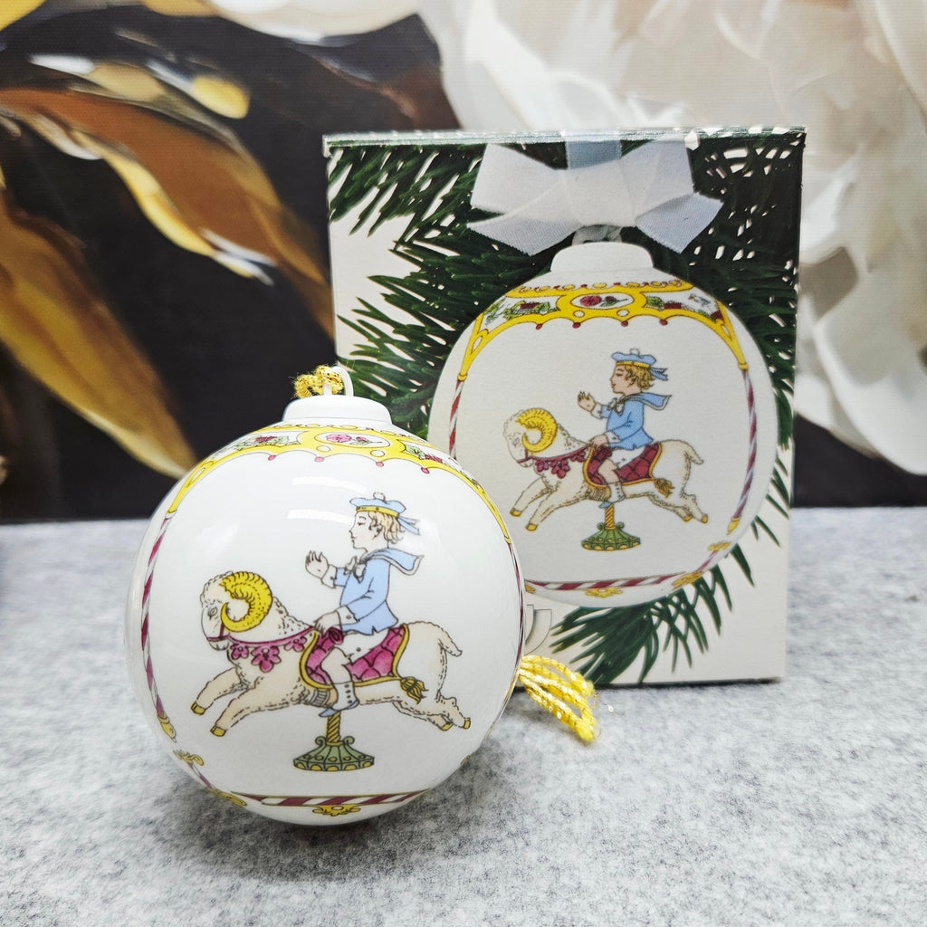 Wunderschönes Hutschenreuther Christbaumspielzeug/Weihnachtsstern Schlittenfahrt 1994