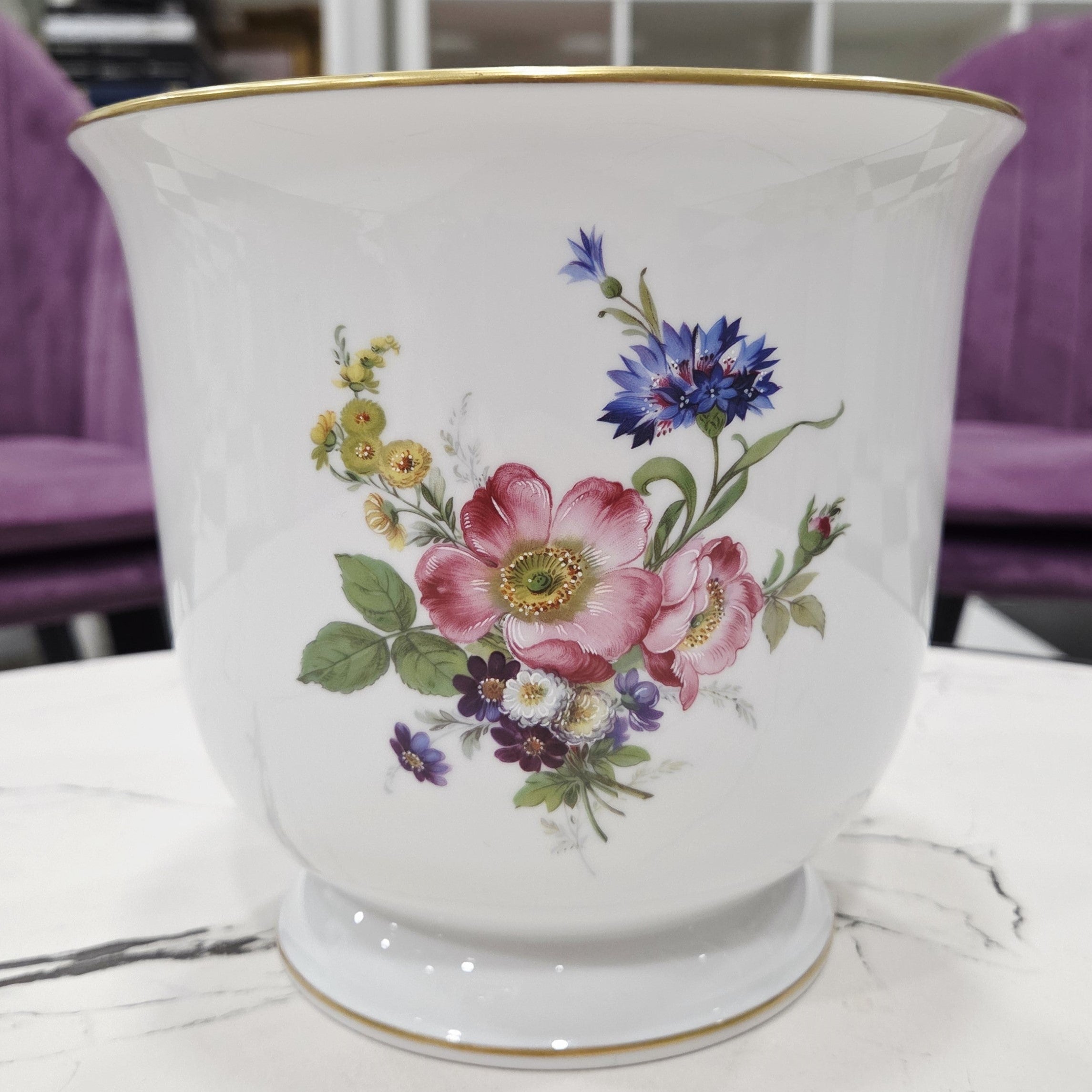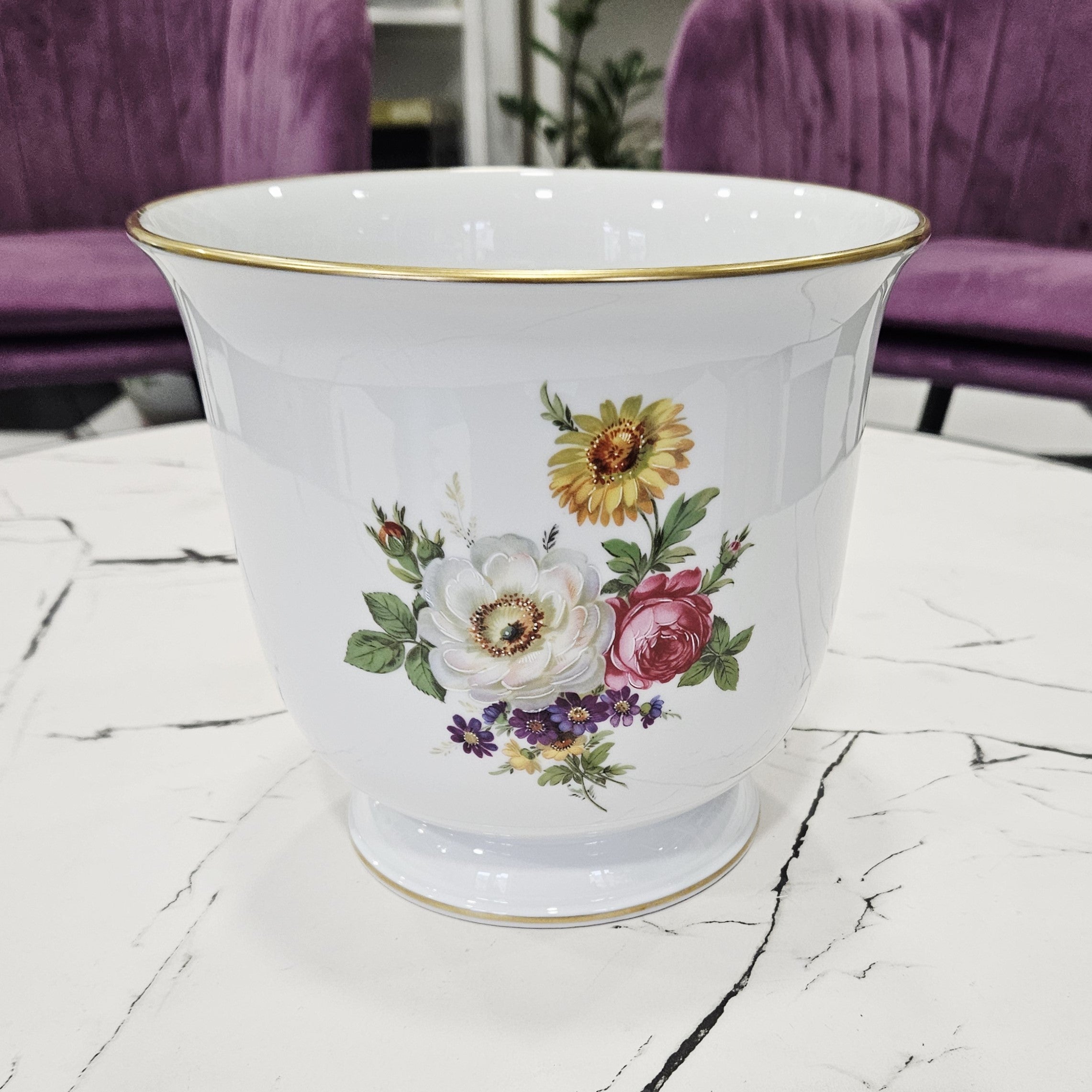 Exklusiver, großerPorzellan-Pflanztopf aus der Serie Gloria von AK Kaiser , verziert mit Gartenblumenarrangements und Goldlinien .