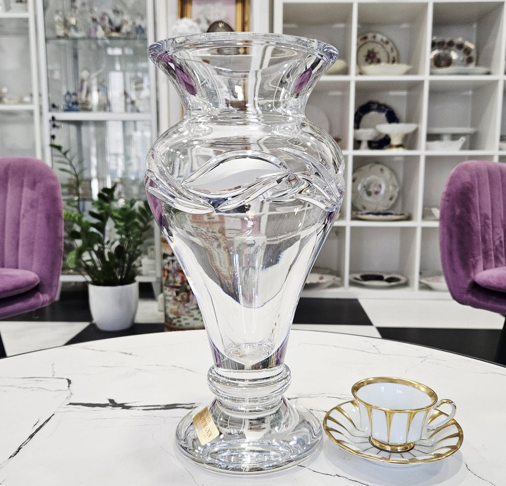 Handbestickte, große, schwere NACHTMANN-Kristallblumenvase (31cm.)
