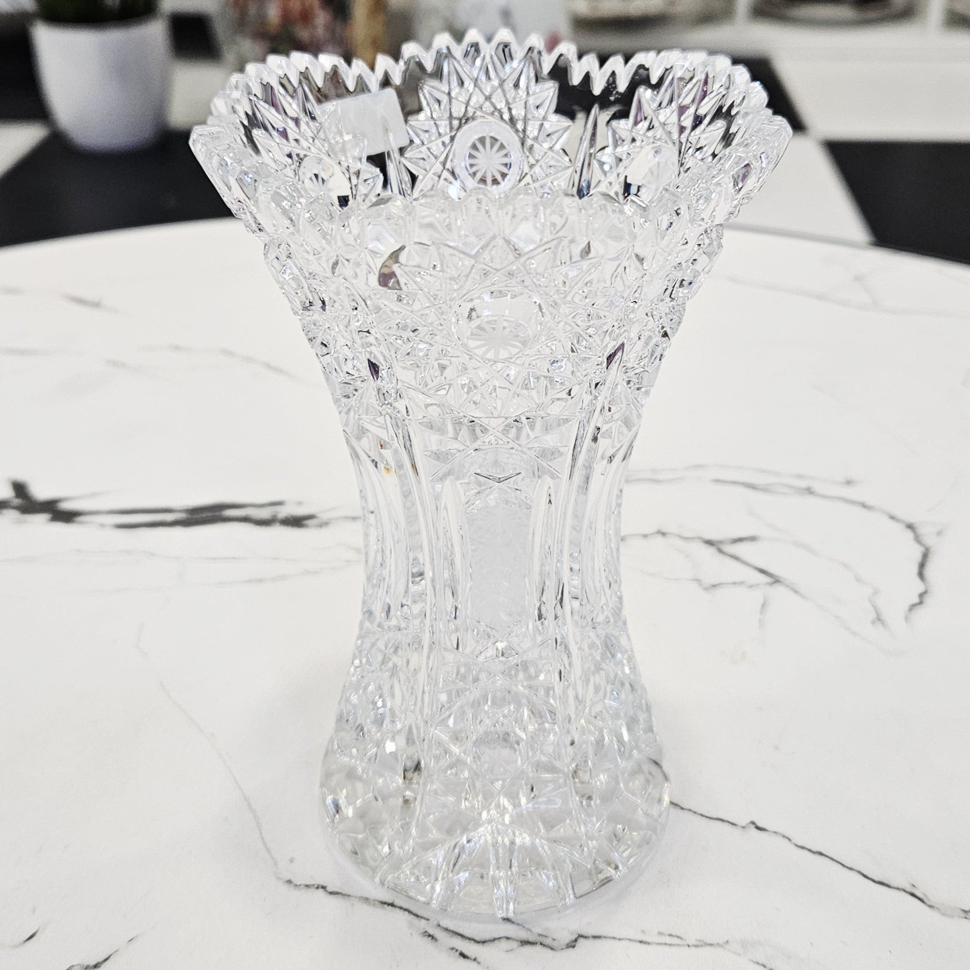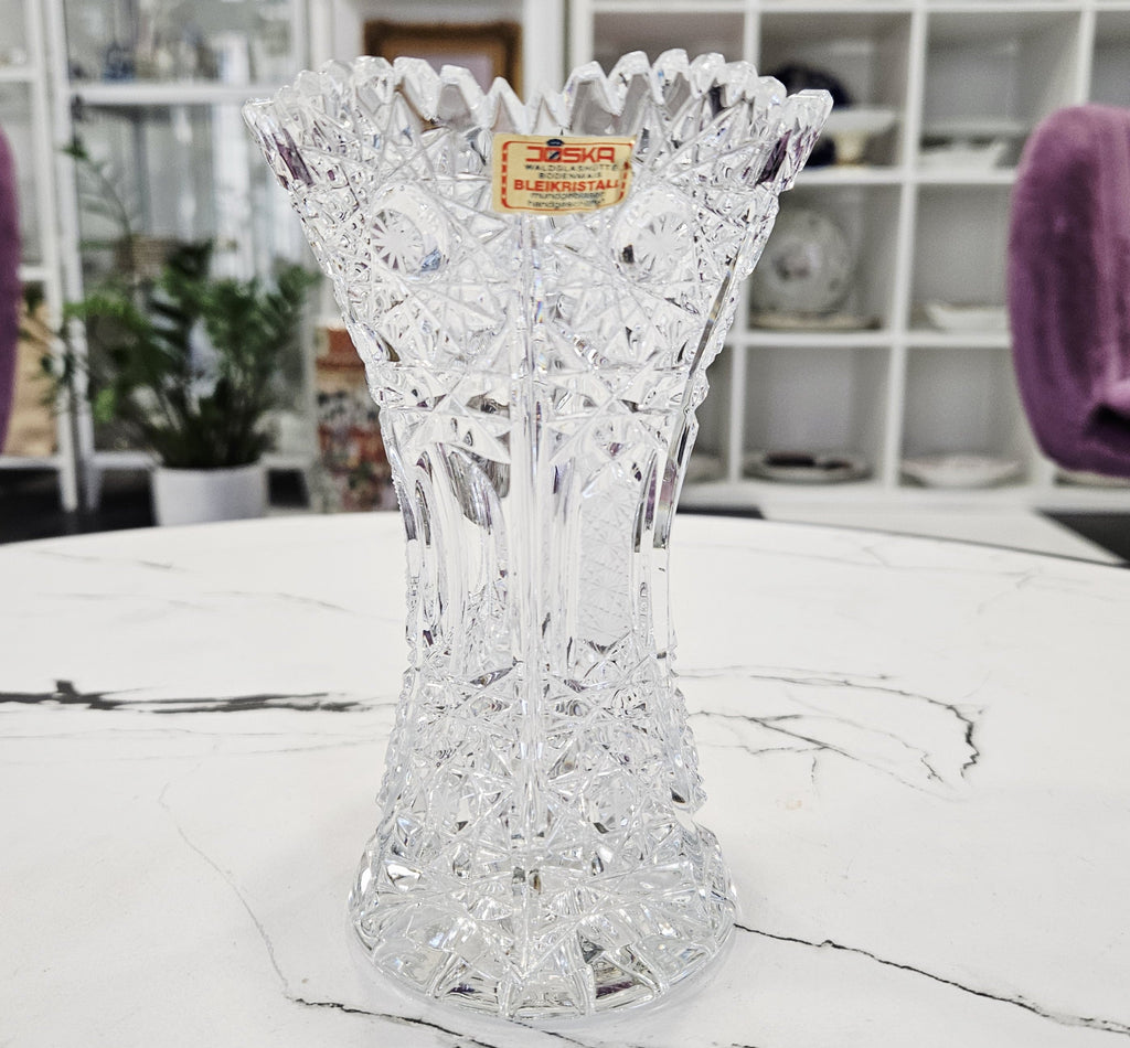 Handbestickte, perfekt leuchtende Kristallblumenvase "JOSKA" (16cm.)