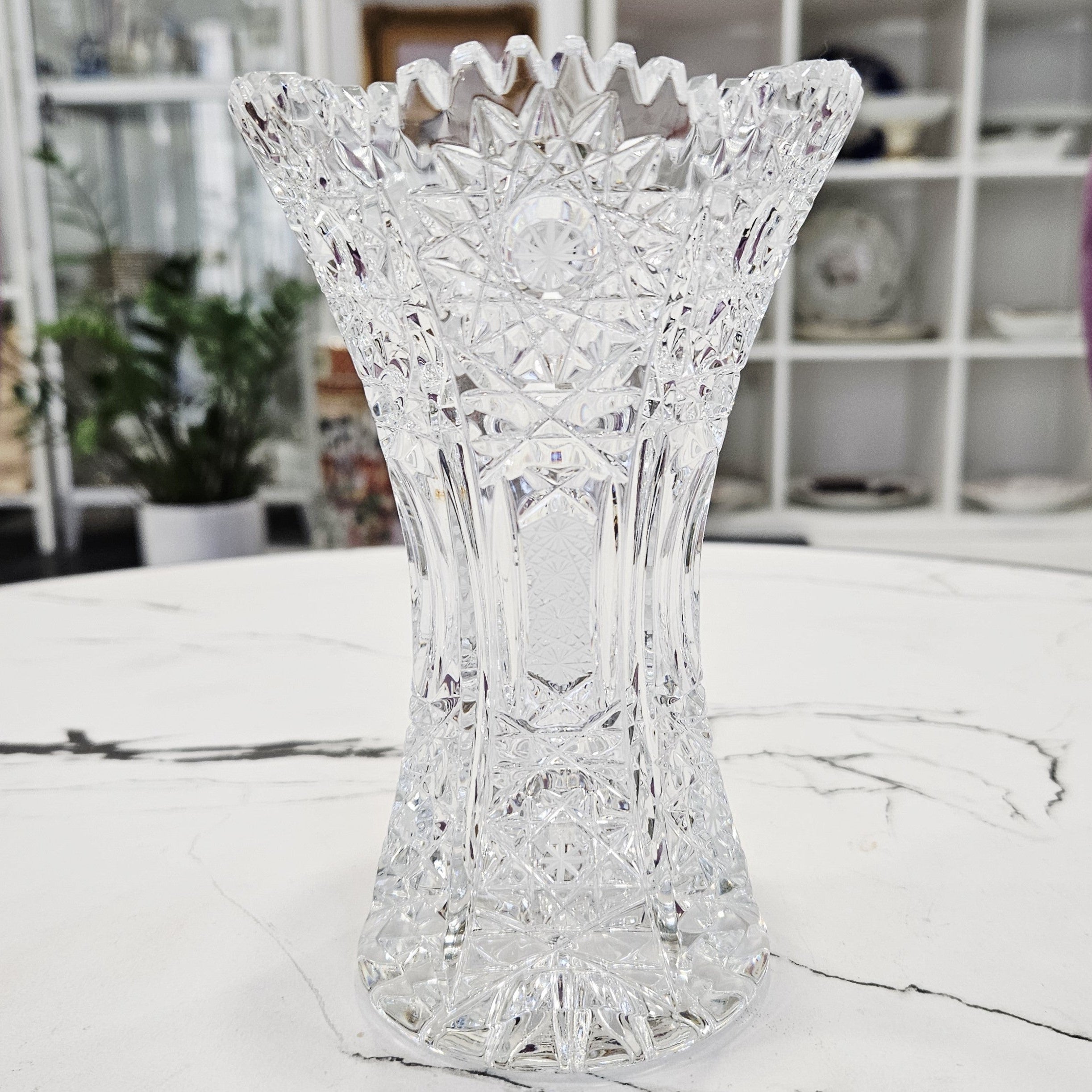 Ein klassisches Beispiel für deutsches Kristall, das sich durch handwerkliche Präzision und Brillanz auszeichnet - perfekt als Akzent in der Inneneinrichtung oder zur Ergänzung einer Sammlung.