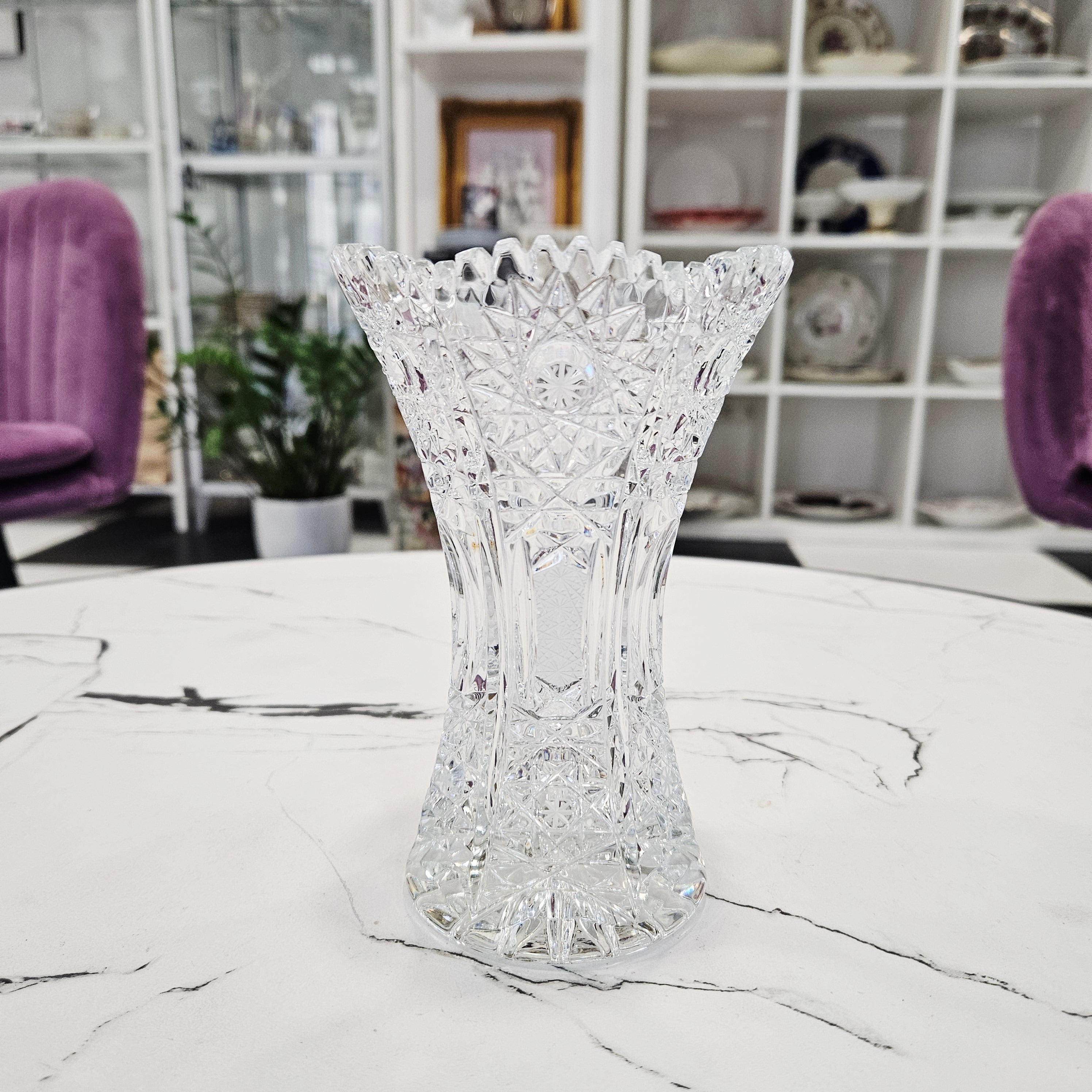 Handbestickte, perfekt leuchtende Kristallblumenvase "JOSKA" (16cm.) – meinantik.de
