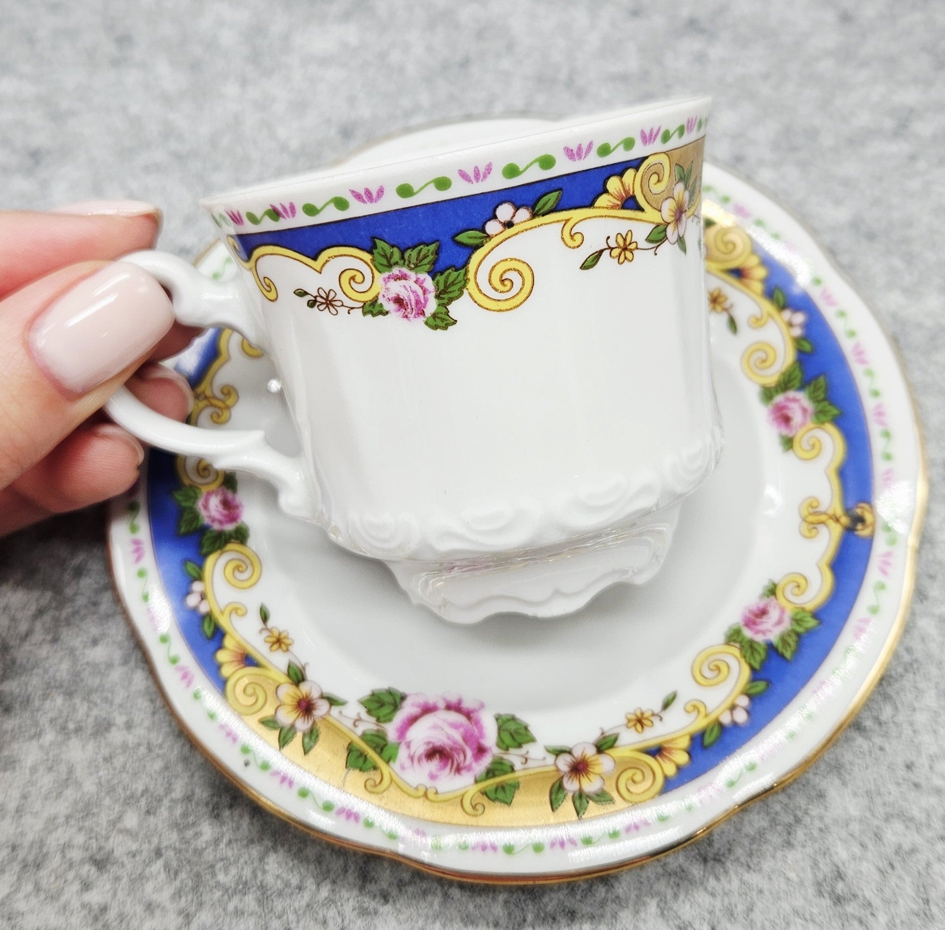 Die elegante "T. Limoges-Porzellan-Kaffeebecher mit floralen Motiven ( – meinantik.de