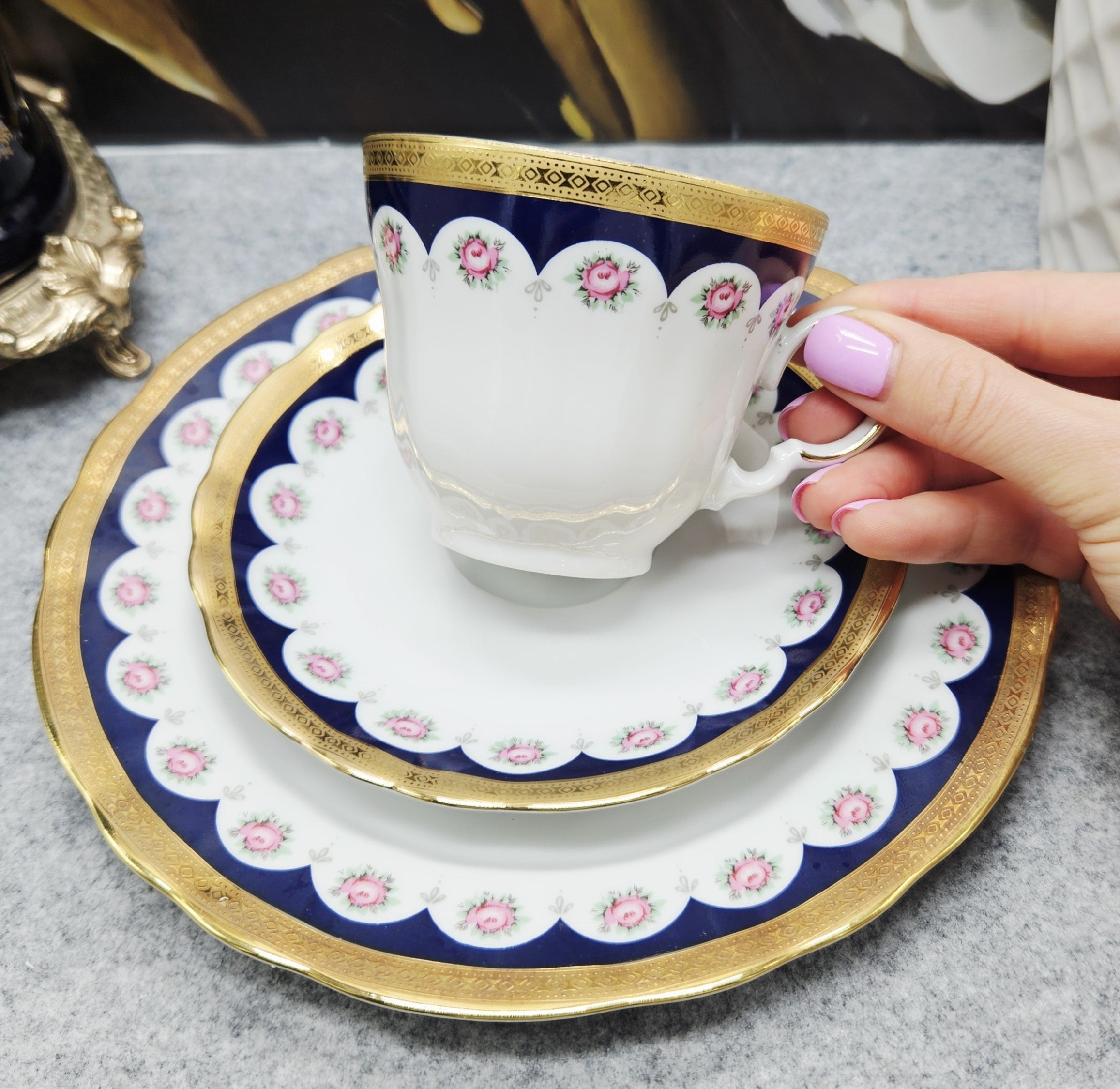 Wunderschöne Winterling Marktleuthen Porzellan Kaffee/Tee TRIO (1 Tasse + 2 Untertassen) Made in ~1950 (180ml)