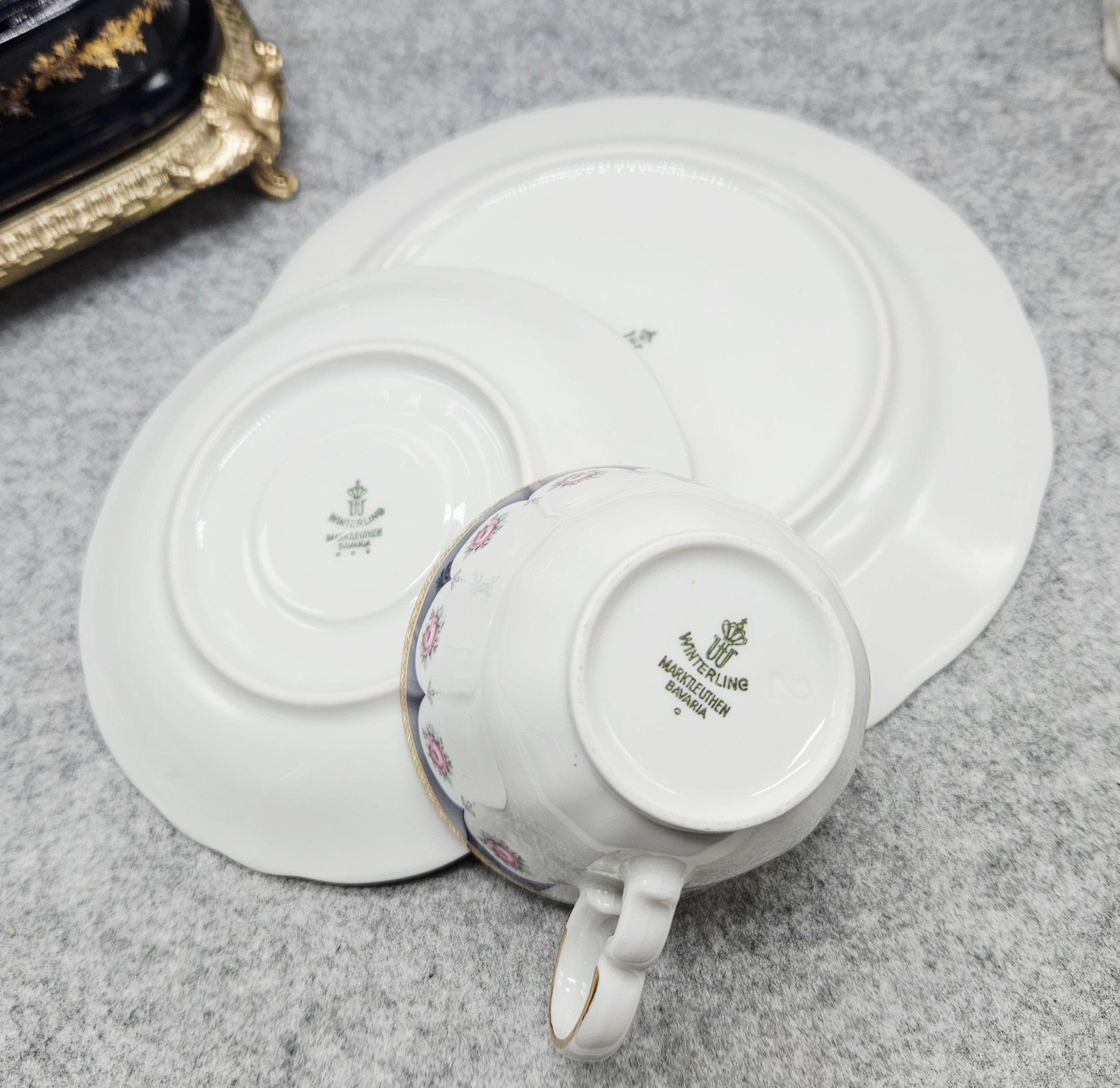 Elegante Winterling Marktleuthen Porzellantasse mit zwei Untertassen.