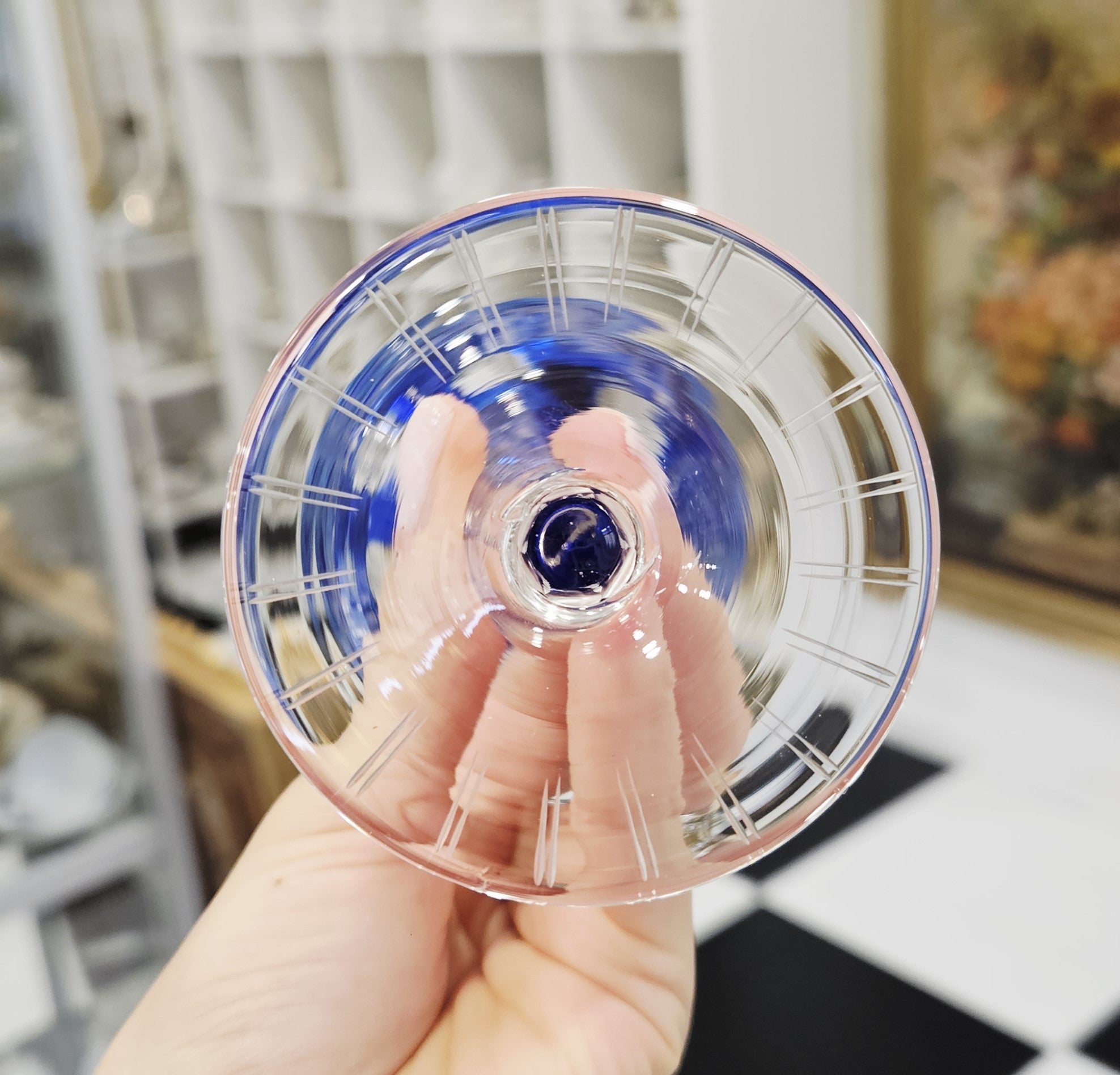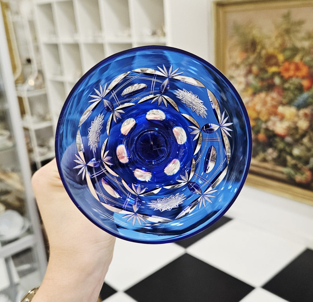 1Stück. Eleganter handgeschnitzter blauer tulpenförmiger Kristallkelch (180ml) ist auf Lager und wird versandt, sobald es wieder verfügbar ist