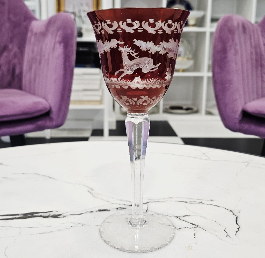 1Stück. Eleganter handgeschnitzter tulpenförmiger Kristallkelch mit Jagdmotiv (180ml) ist auf Lager und wird versandt, sobald es wieder verfügbar ist