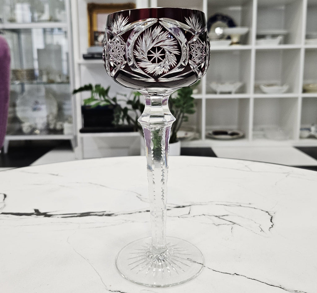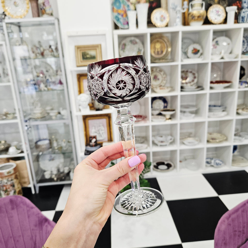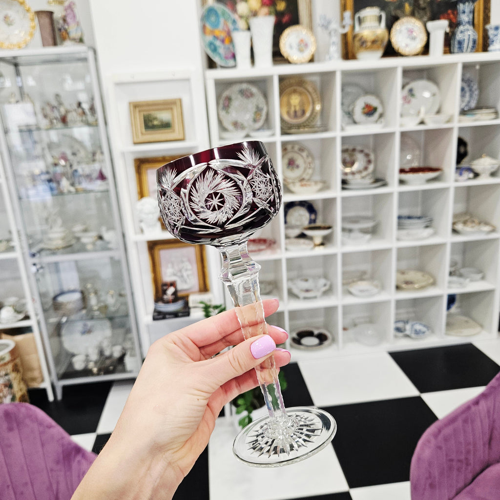 1Stück Handgeschnitztes großes kirschfarbenes Kristallweinglas (200ml) – meinantik.de