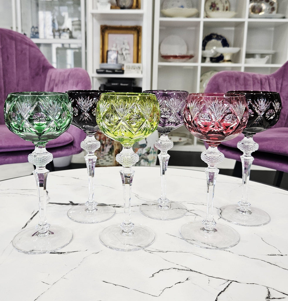 6 Stück. Sehr seltene, beeindruckende, große WMF Cristal Cabinet farbige Kristallgläser (220ml.)