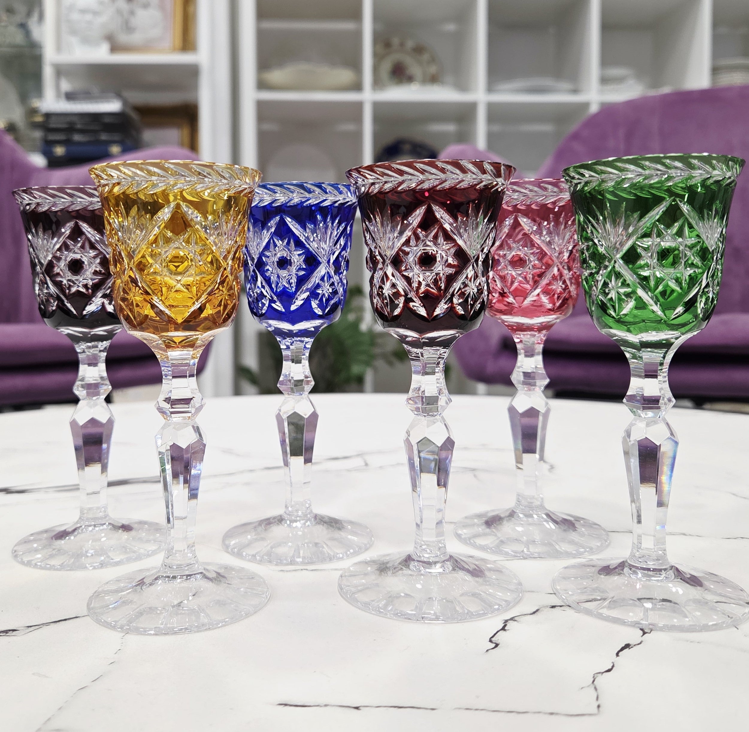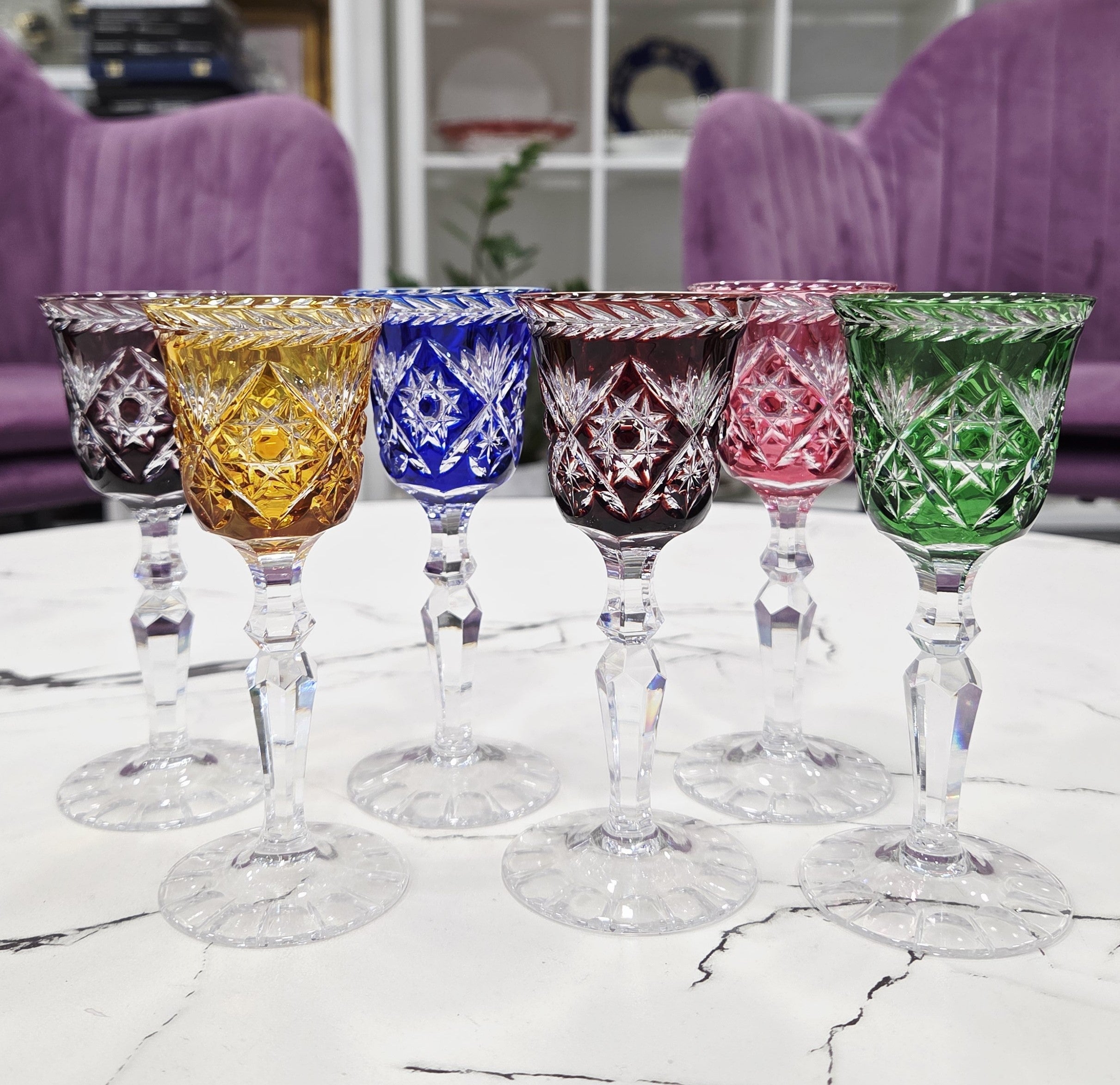 Satz von 6. Set von luxuriösen, farbigen Kristall Knittel handgefertigte Likörgläser (30ml)