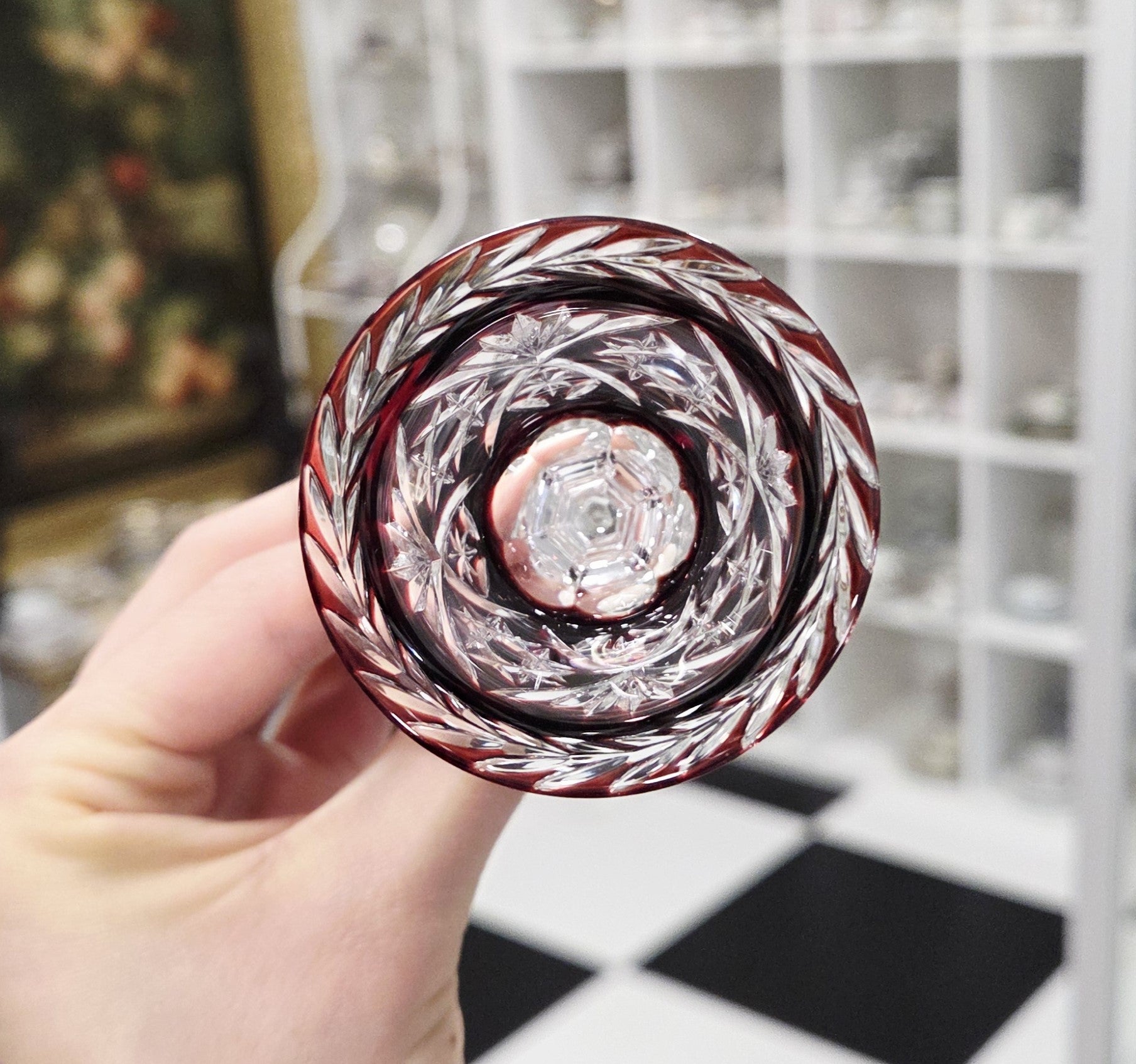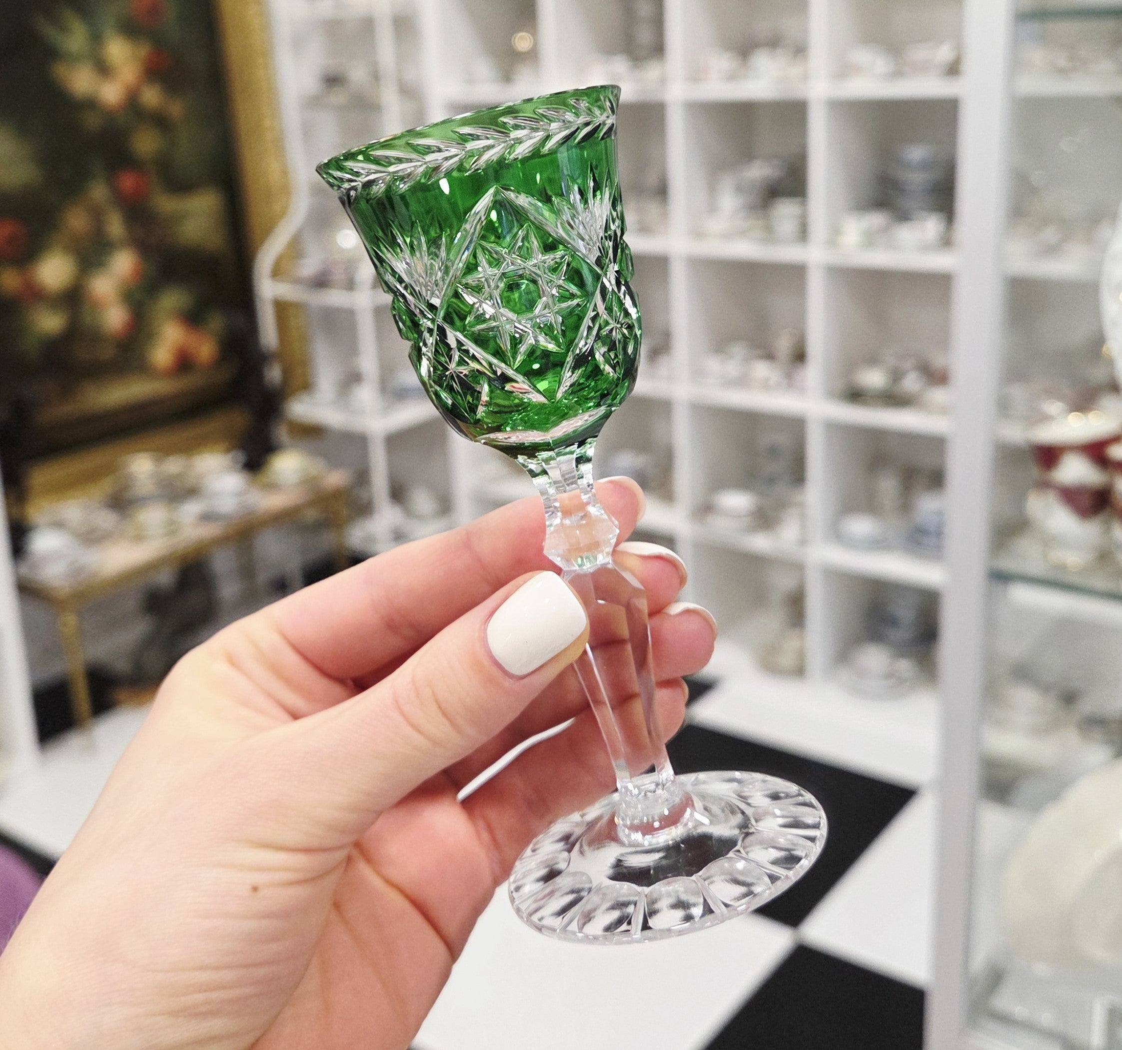 Handgeschliffene geometrische Ornamente spielen zart mit dem Licht, um ein außergewöhnliches Funkeln zu erzeugen und die Handwerkskunst des Kristalls hervorzuheben. Die elegante Form, der zierliche Fuß und der stabile Sockel verleihen den Gläsern nicht nur eine ästhetische Schönheit, sondern auch ein angenehmes Gefühl beim Gebrauch.