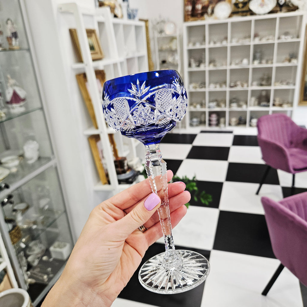 Spektakuläres blaues Val Saint Lambert Kristallweinglas (160ml) ist auf Lager und wird versandt, sobald es wieder verfügbar ist
