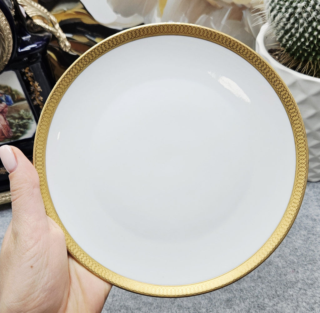 Schöne Seltmann Weiden Bavaria Porzellan Dessertteller, verziert mit einem Band von Goldornamenten.