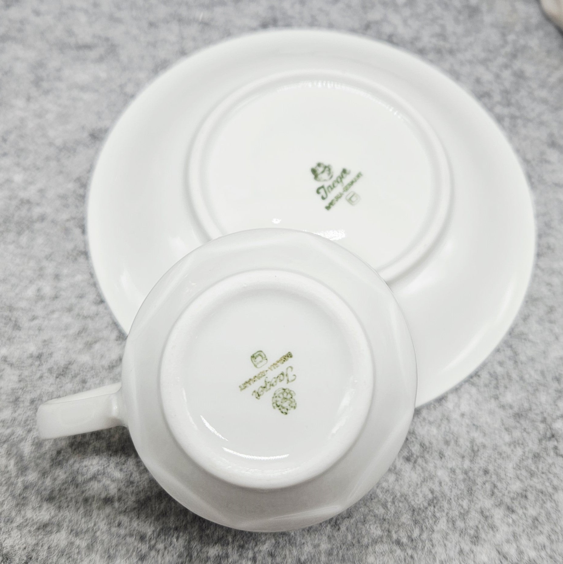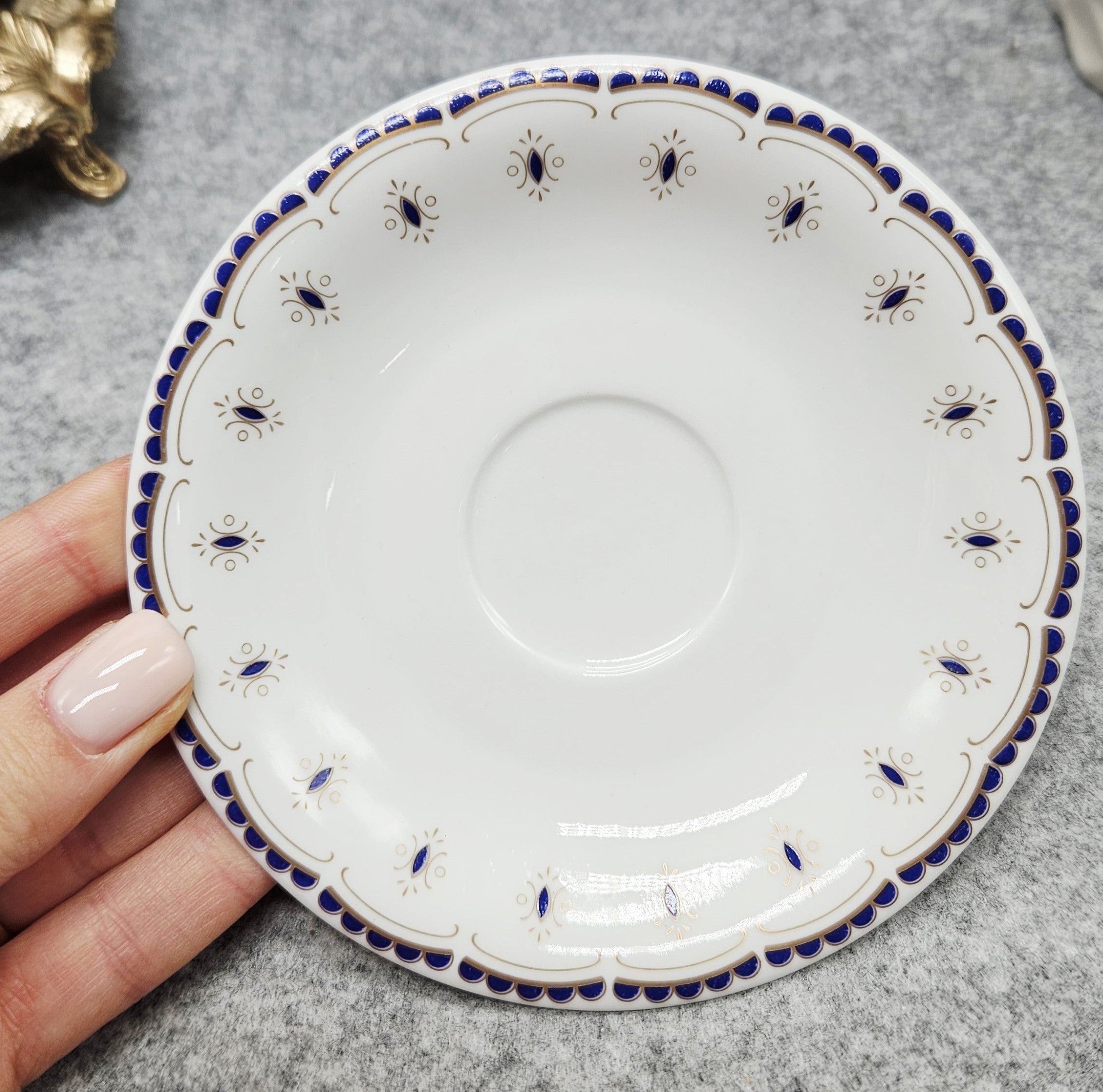 Elegante Kaffeetasse und Untertasse aus Porzellan von Jaeger mit blaue – meinantik.de