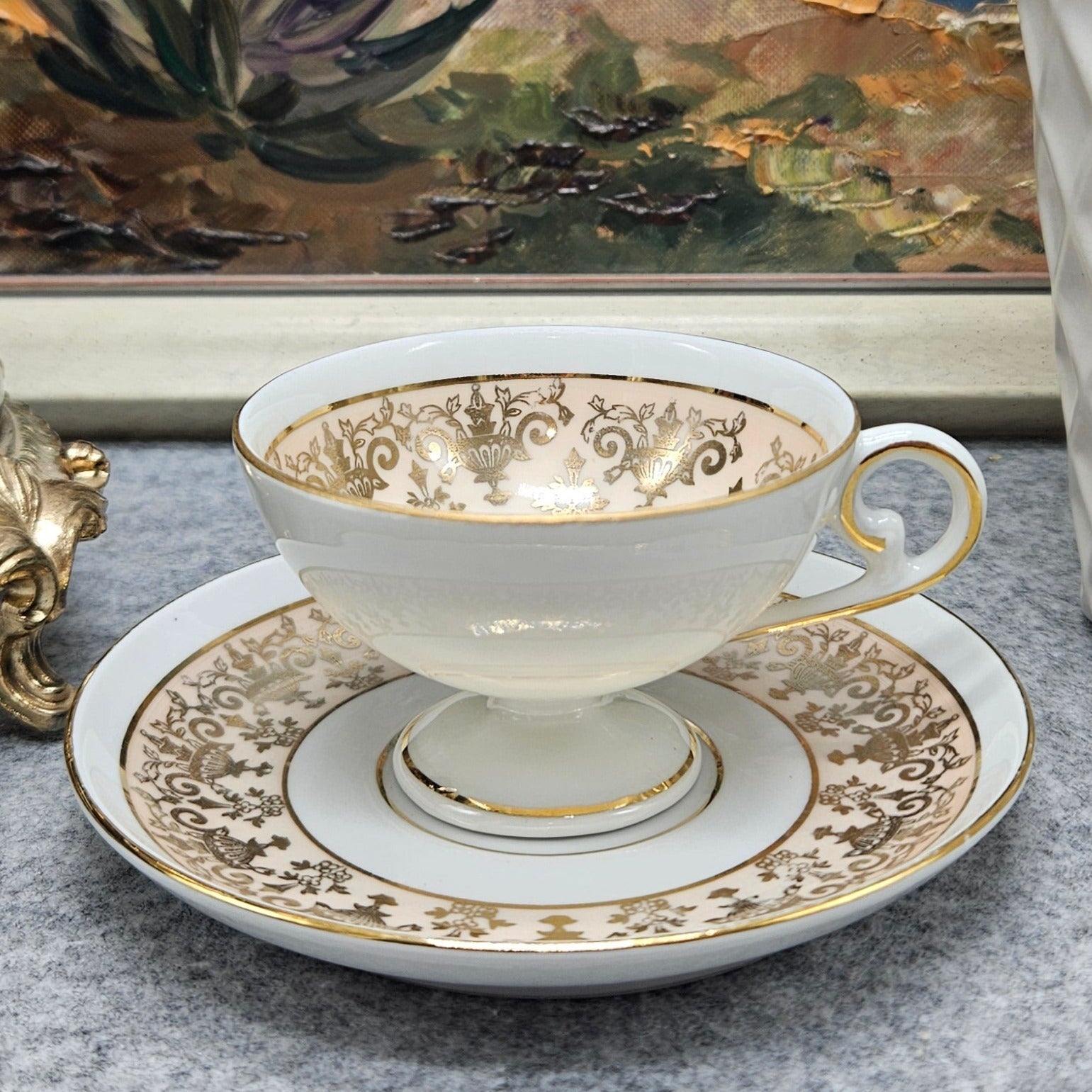 Eine exklusive, elegante, reich vergoldete Kaffeetasse aus Oscar Schlegelmilch Porzellan.