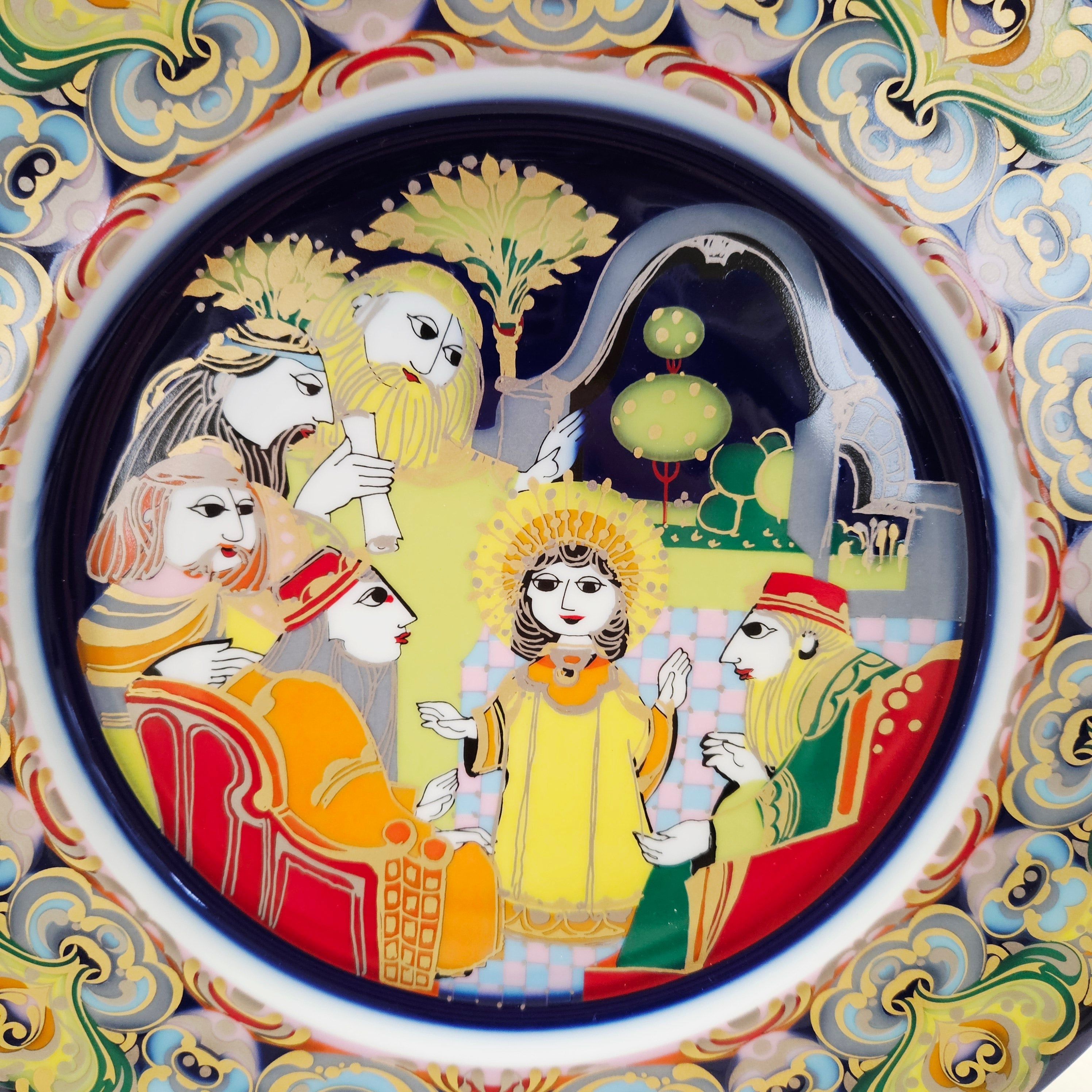 Limitierte Auflage des handdekorierten Rosenthal-Tellers "Das Kind bei den Gelehrten im Tempel", 1981 (28,5cm).