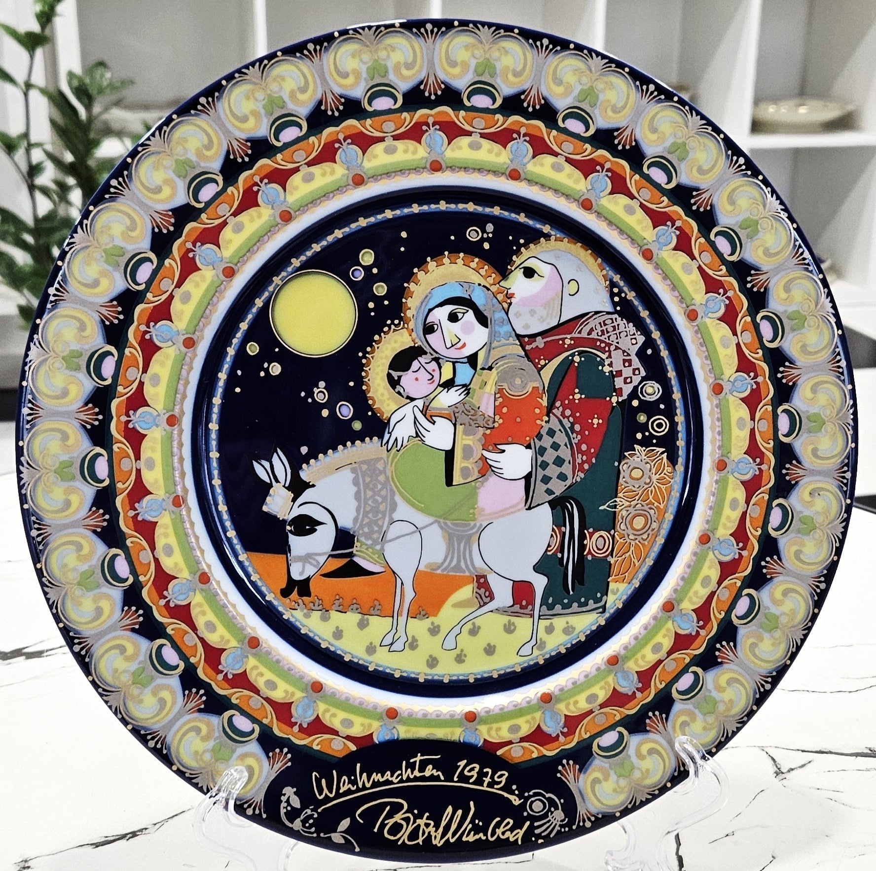 "Der Zierteller "Flucht nach Ägypten" von Rosenthal aus dem Jahr 1979 ist ein bedeutendes Porzellan-Sammlerstück, das die jährliche Serie der sakralen Teller von Rosenthal fortsetzt.