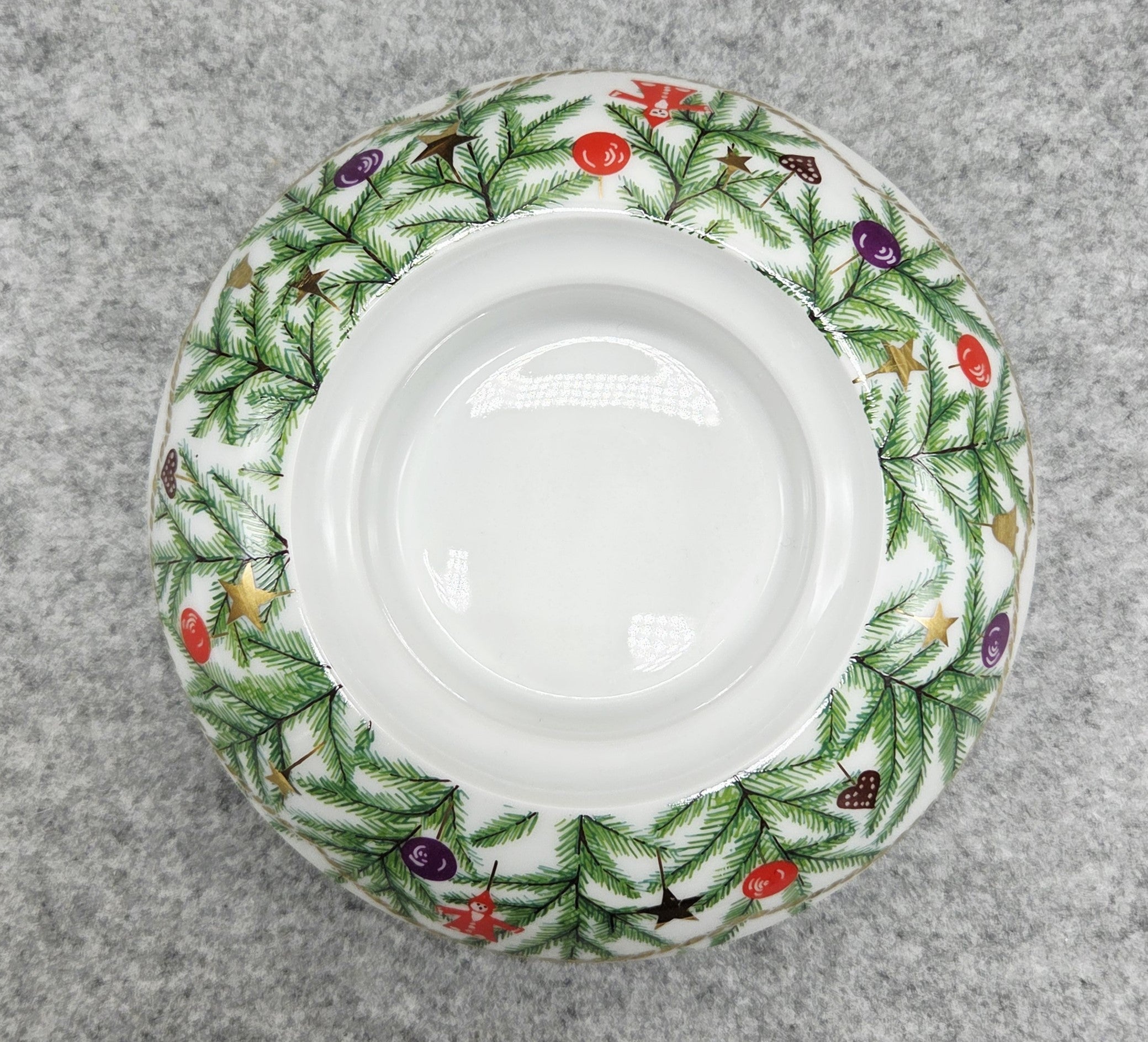 Der Kerzenhalter ist mit festlichen Weihnachtsmotiven wie Tannenzweigen, bunten Blasen, Sternen und zarten Details verziert, die ein gemütliches und warmes Gefühl vermitteln. Das klassische weiße Porzellan fügt sich harmonisch in die Einrichtung ein, während die sorgfältig gearbeiteten Details die hohe Qualität und Ästhetik des Stücks unterstreichen.