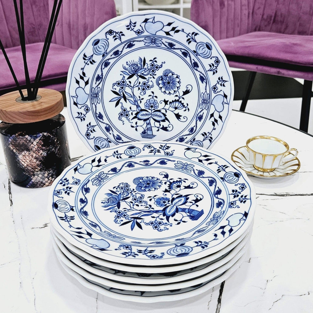 6er Set, Tschechoslowakei Original Zwiebelmuster Porzellan Essteller (24,5cm.)