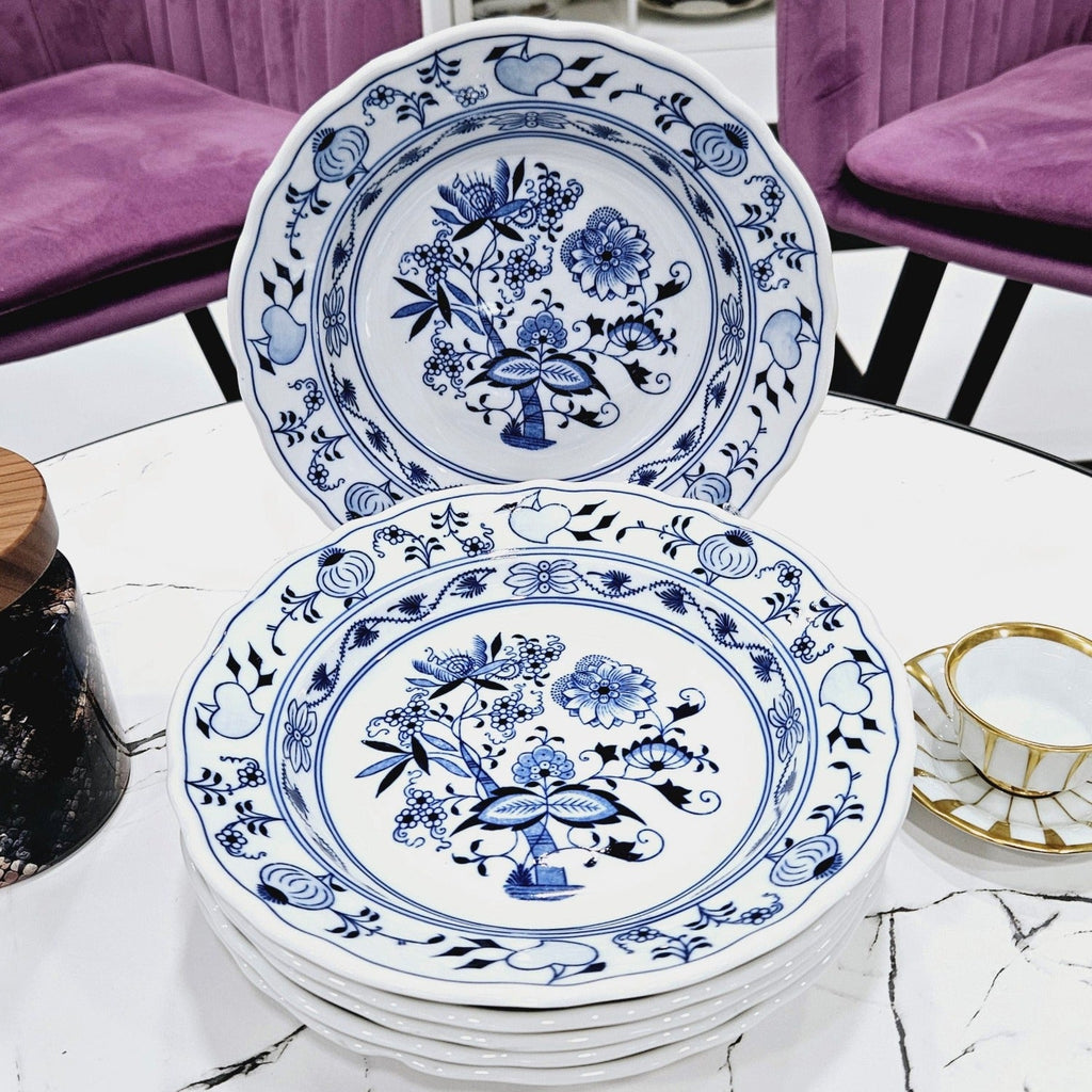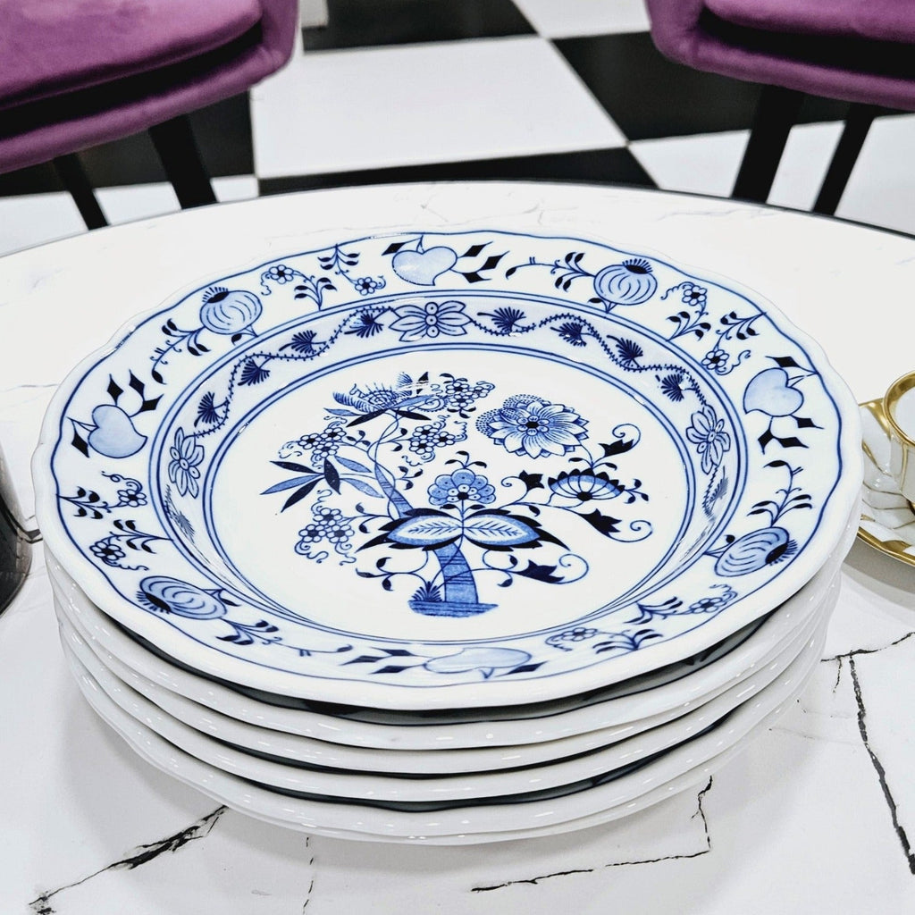6er Set, Tschechoslowakei Original Zwiebelmuster Porzellanteller tief (24,4cm.)