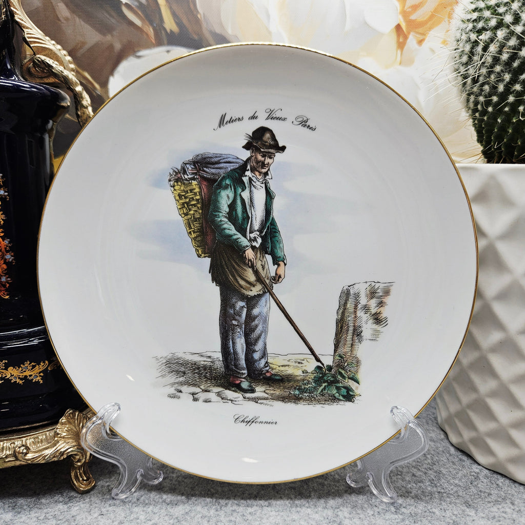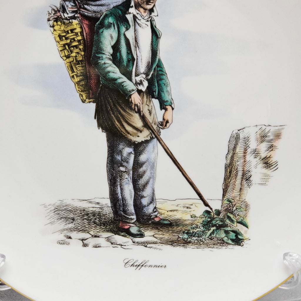 Außergewöhnlicher Sammler-Porzellanteller aus der Serie "Métiers du Vieux Paris" (Berufe des alten Paris), der den Chiffonnier, ein Handwerk des Paris des 19.