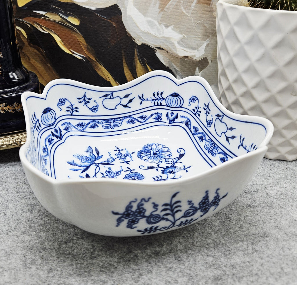 Zwiebelmuster Schale / Salatschüssel aus weißem Porzellan.