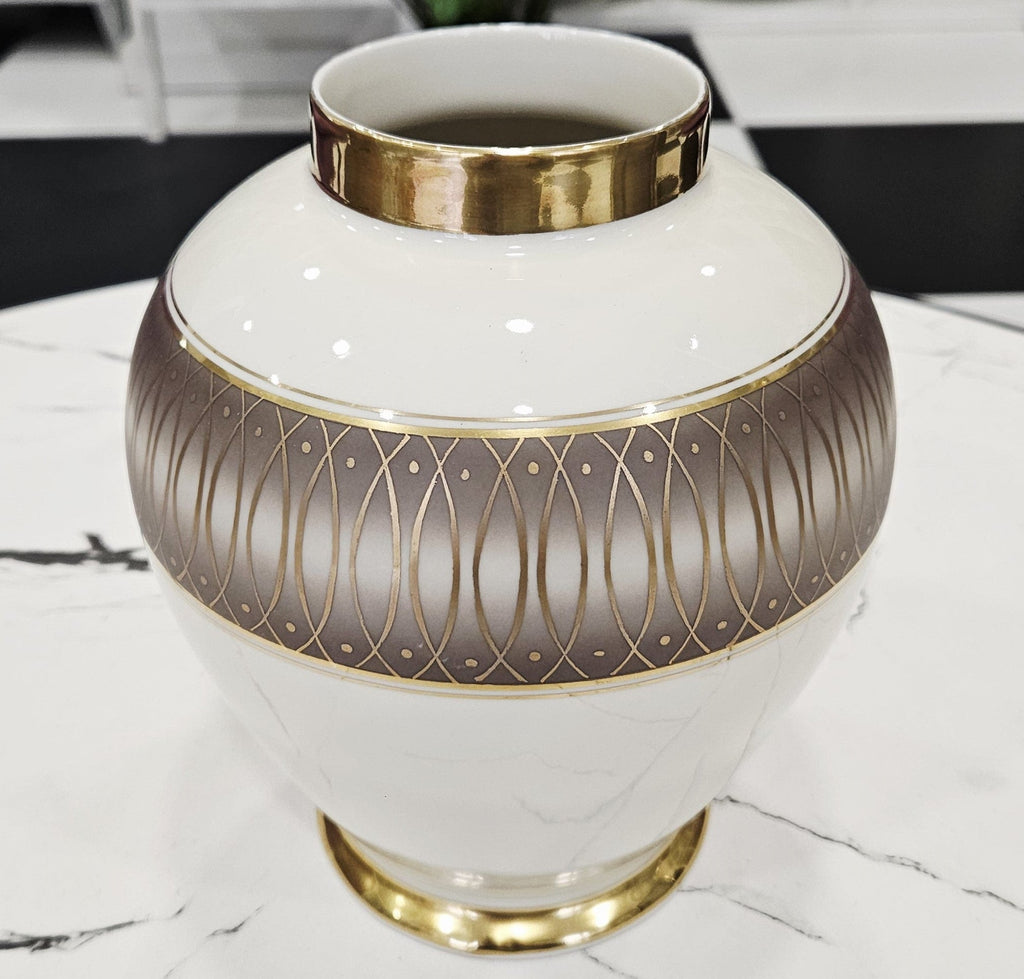 Luxuriöse deutsche Porzellanvase mit zartem geometrischem Muster - Johann Seltmann Vohenstrauß (21cm.)