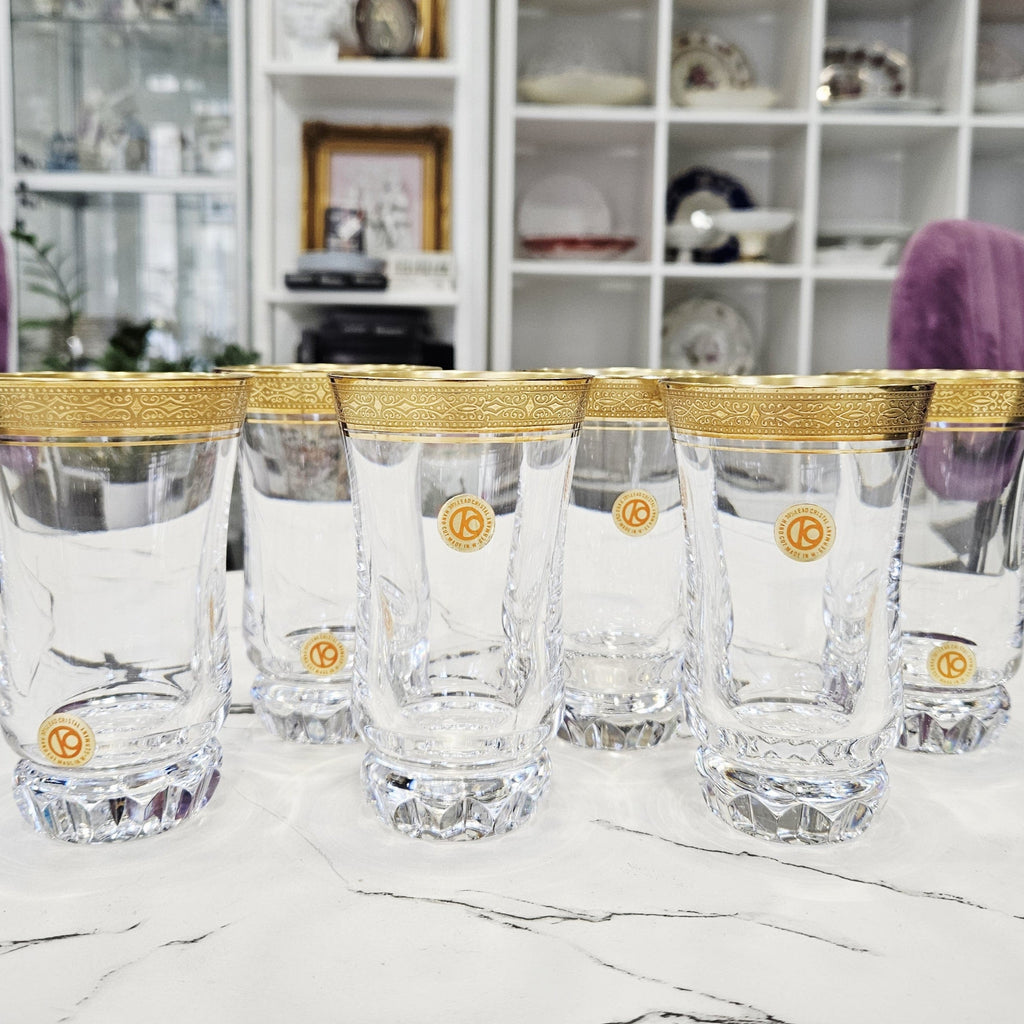 6Stück. Luxuriöse deutsche Kristallwassergläser mit 24K Gold (220ml.)