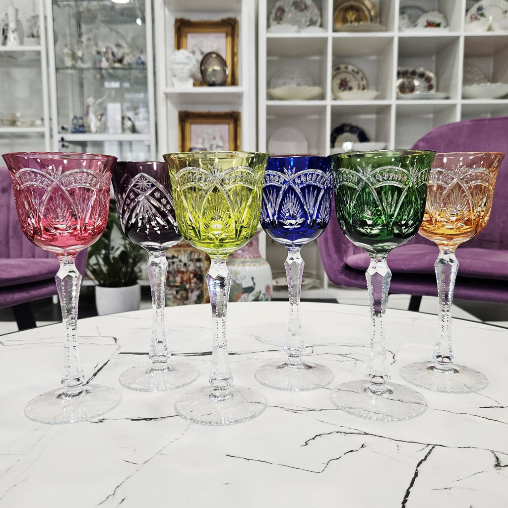 6Stück. Seltene, große, luxuriöse Weingläser aus farbigem Kristall (220ml)