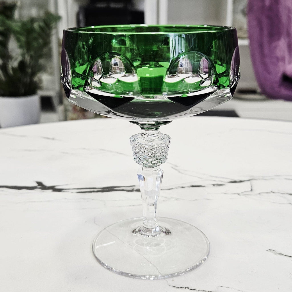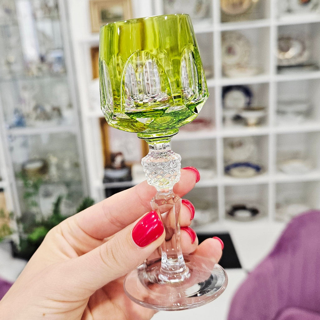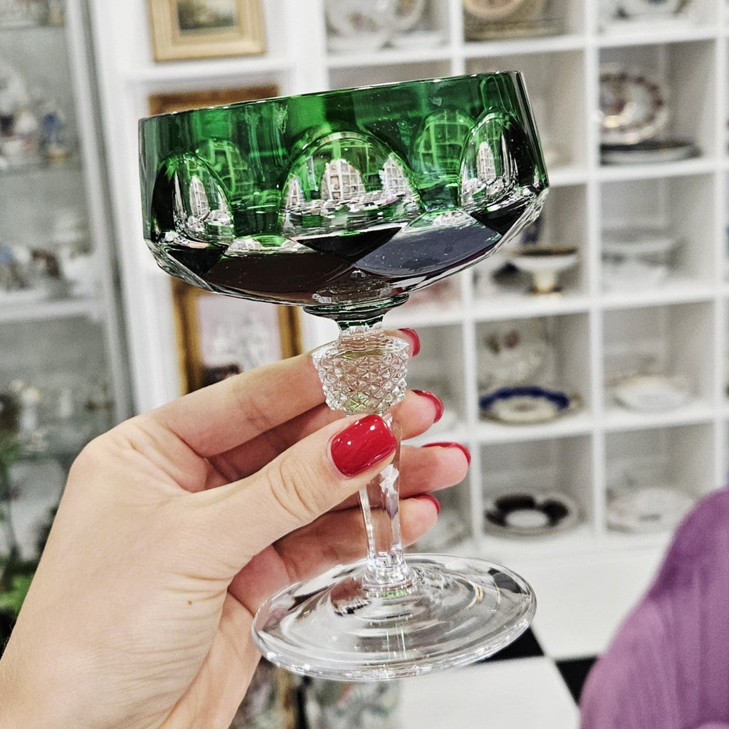 Luxuriöser, hochwertiger Nachtmann Antika Kelch aus grünem Kristall (~200 ml)