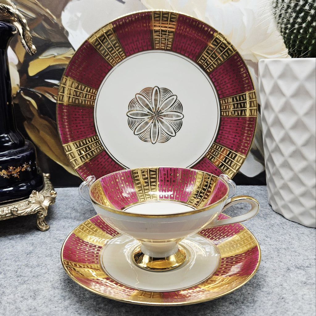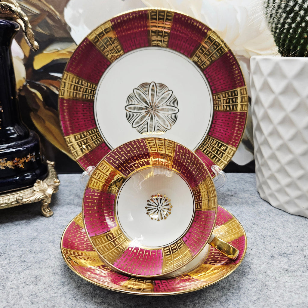 Reich vergoldetes, luxuriöses Winterling Röslau Porzellan Kaffee/Tee TRIO (1 Tasse + 2 Untertassen).170ml. Hergestellt in den Jahren 1945 - 1950.