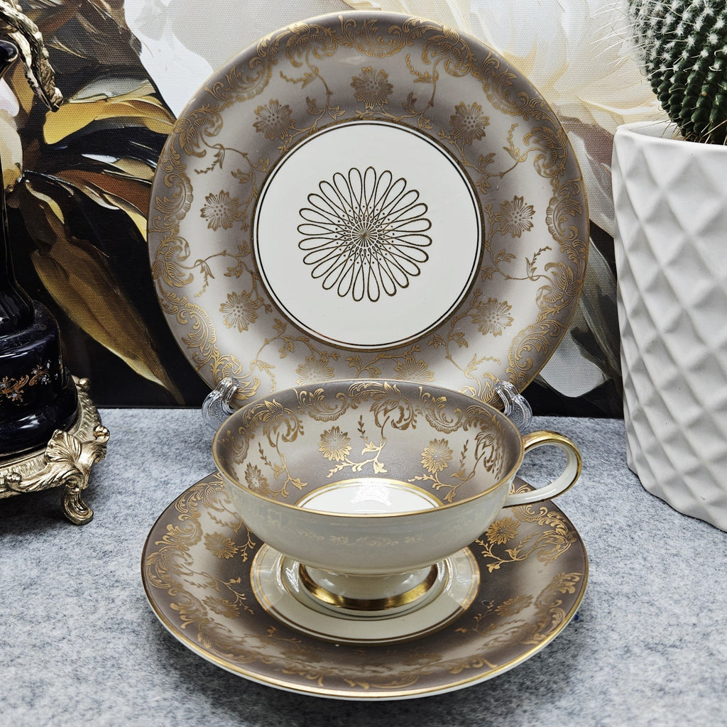 Wunderschöne Johann Seltmann Vohenstrauss Tasse und Untertasse TRIO (1 Tasse + 2 Untertassen) (200ml.) Hergestellt um 1949.