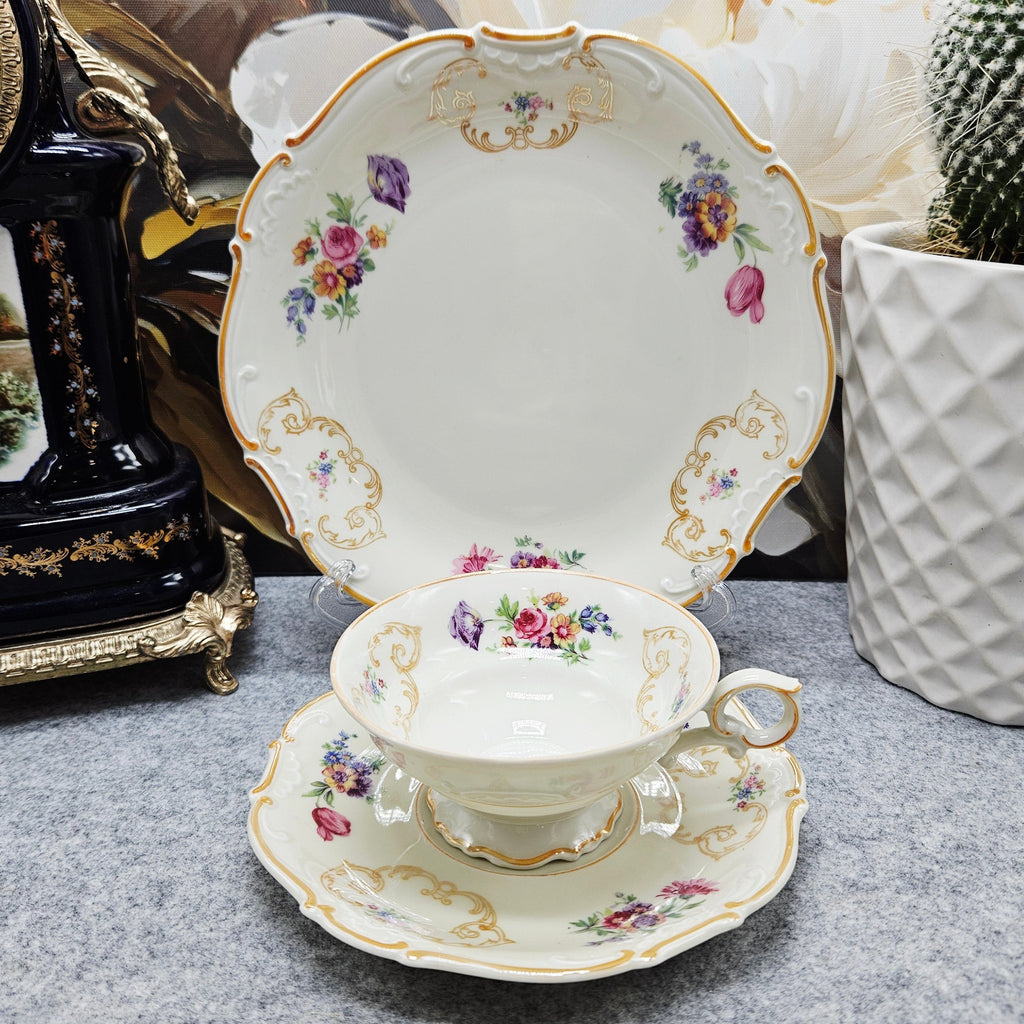 Wunderschönes Winterling Marktleuthen Porzellan Kaffee/Tee TRIO (1 Tasse + 2 Untertassen)190ml. Hergestellt um ~1950.