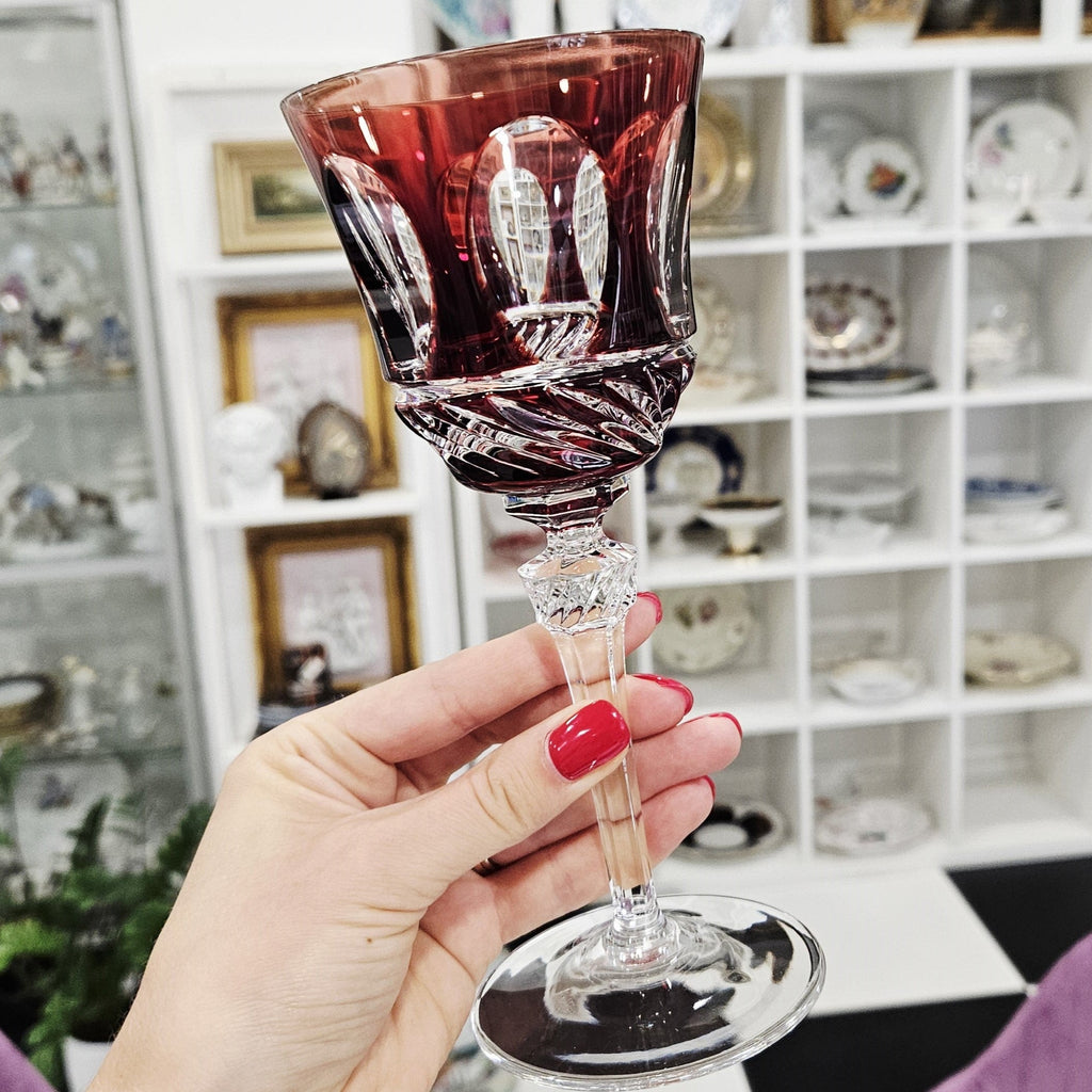 1Stück. Roter handgeschnitzter Kristallpokal. (180ml.)