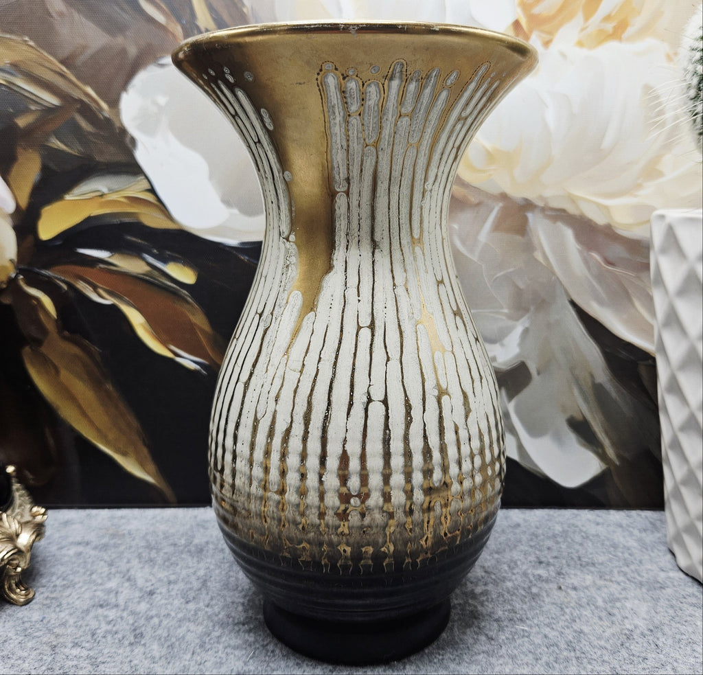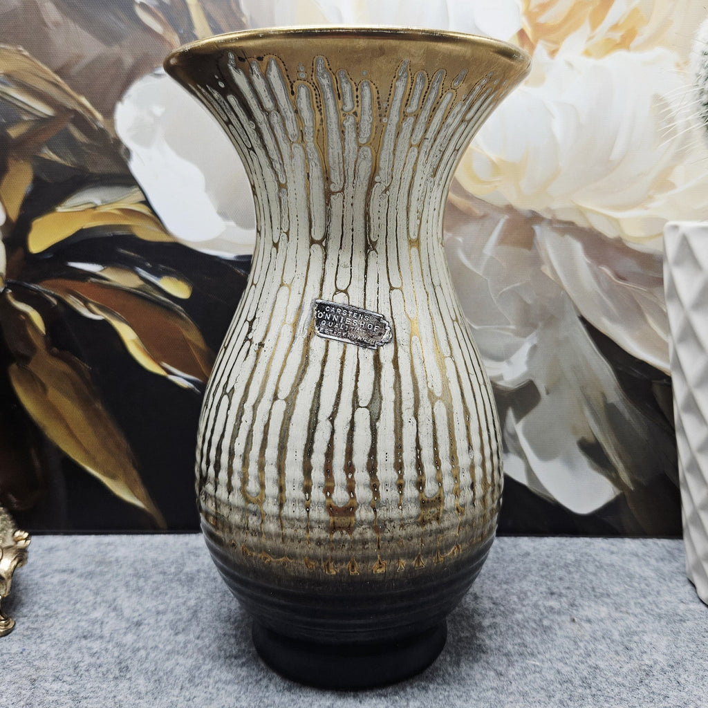 Große handverzierte Vase aus vergoldetem Porzellan aus der Sammlung Monarchin von KAISER (34 cm.), Sammlerstück