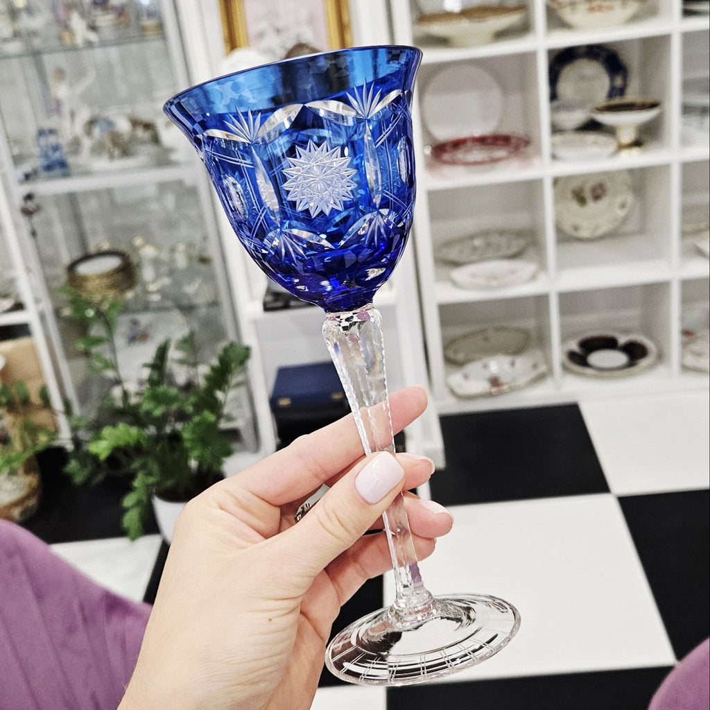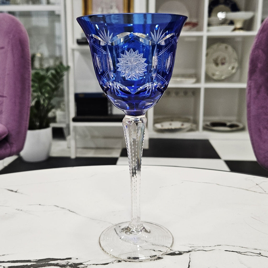 1Stück. Blauer LAUSITZER-Kelch aus Kristall, handgeschnitzt. (190ml)