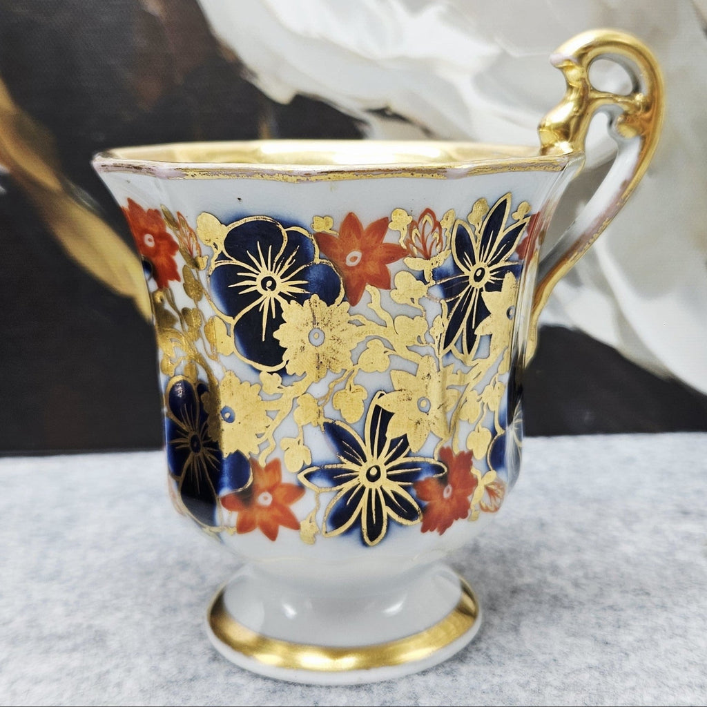 Wunderschöne Porzellantasse mit Untertasse - klassischer floraler Charme und goldene Akzente (70ml.)