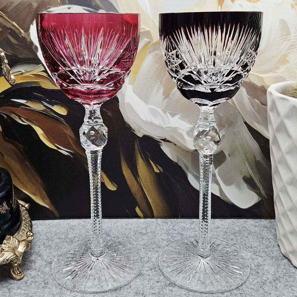 Satz von 2. Seltene, handgeschnitzte, farbige Kristallpokale "Für Sie und Ihn" (170 ml)
