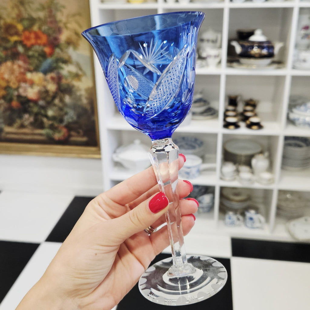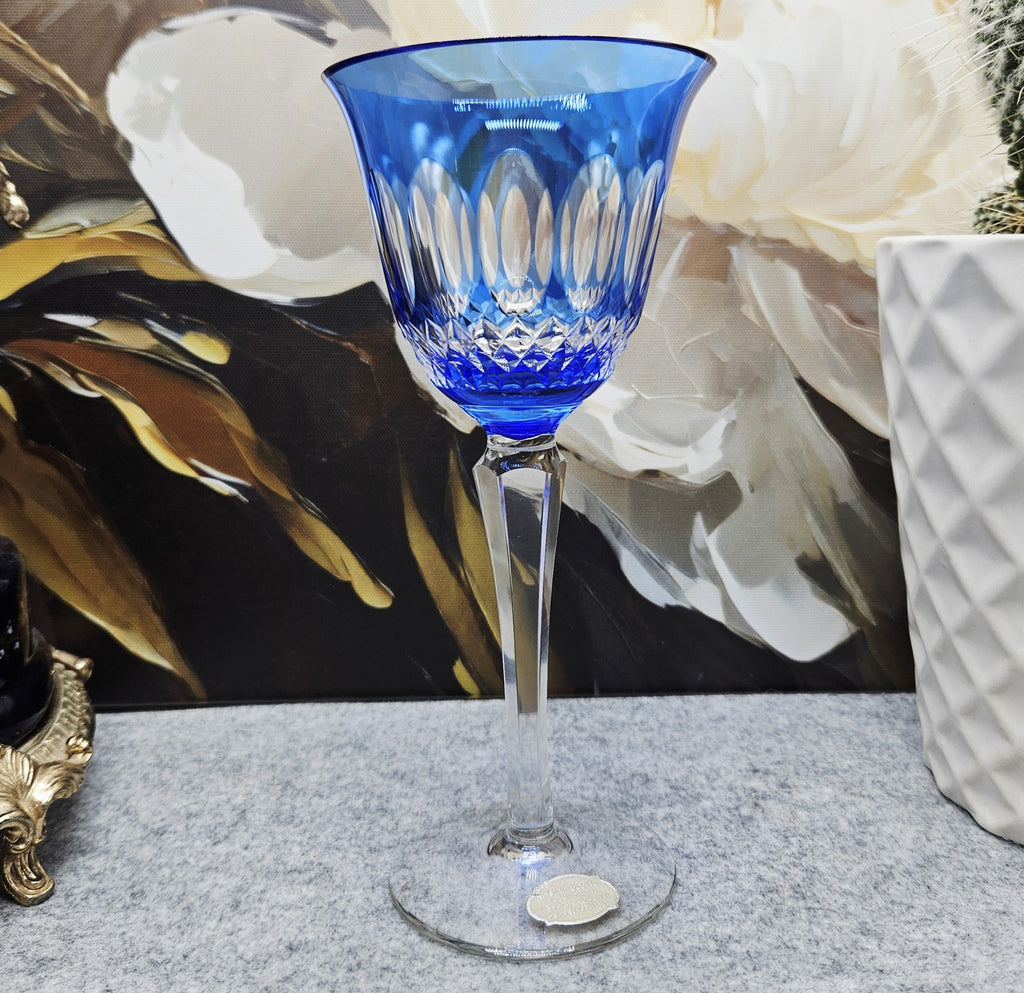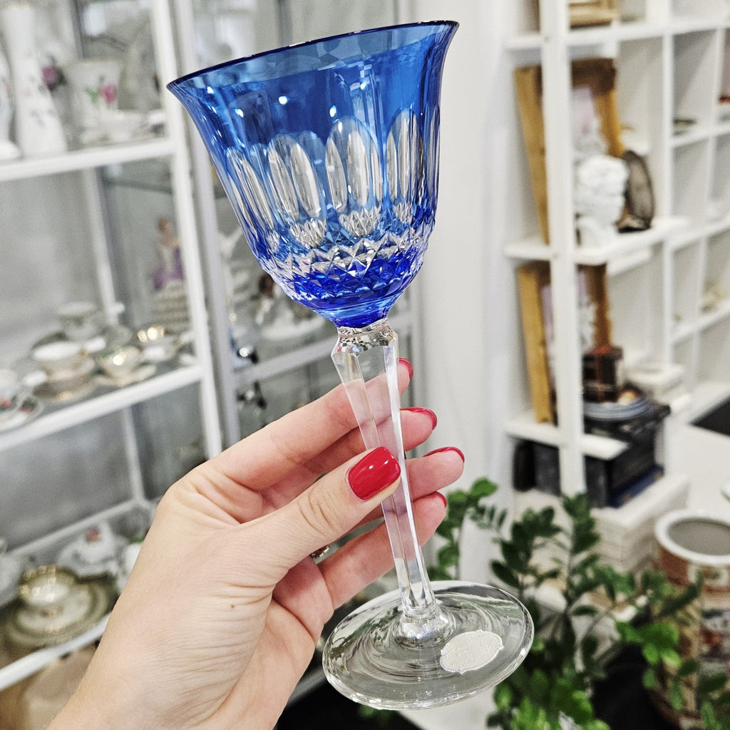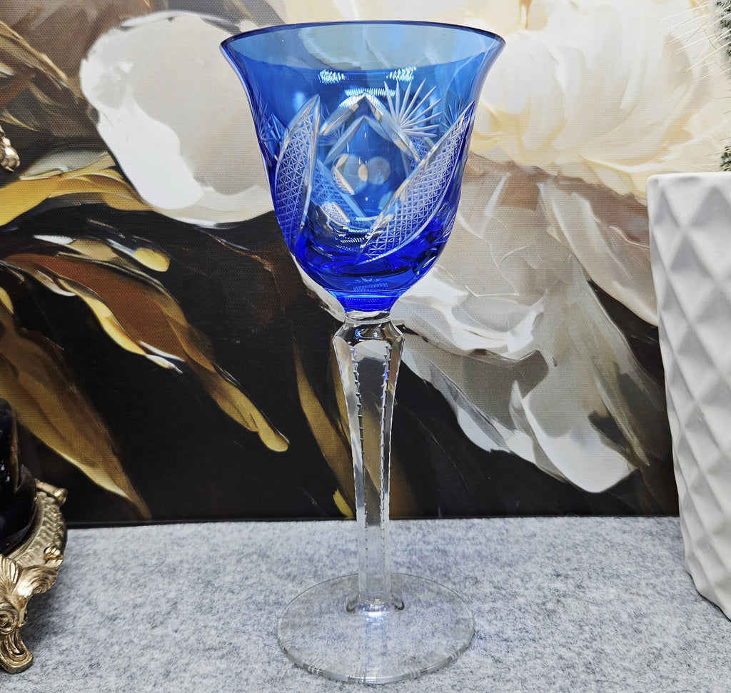1Stück. Eleganter handgeschnitzter blauer tulpenförmiger Kristallkelch (170ml)