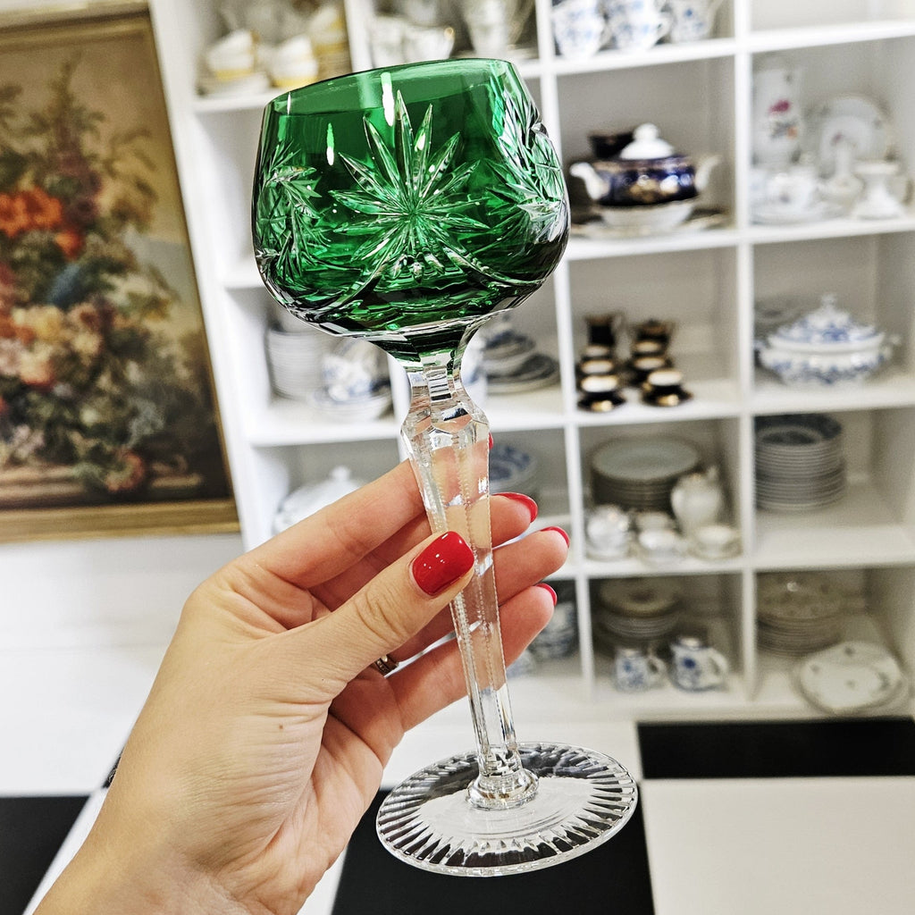 1 Stück. Kristall, handgeschnitzt, grünes Weinglas. (190 ml)
