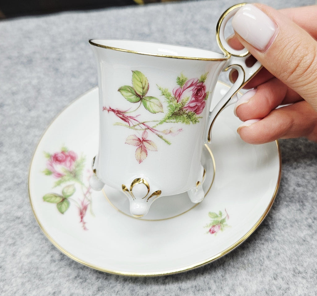 "Lindner Porzellan Espressotasse mit Untertasse, Moosrose Dekor (60ml.)
