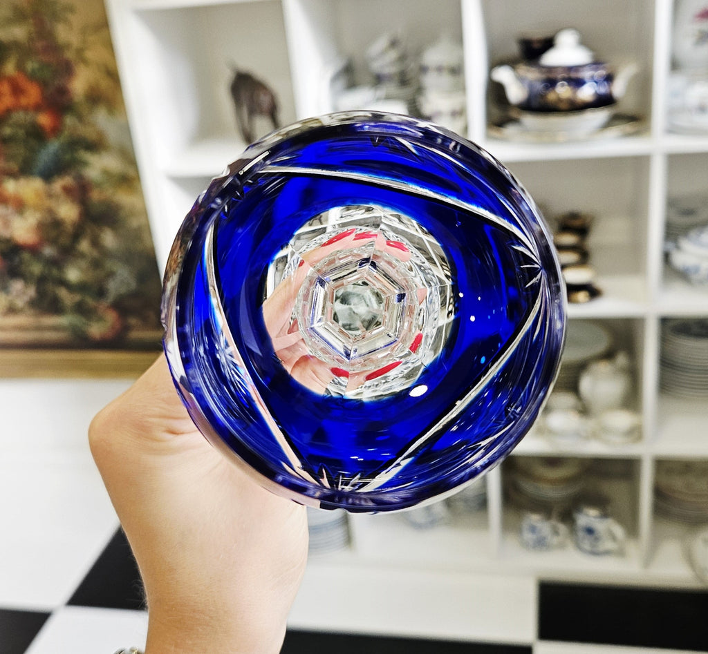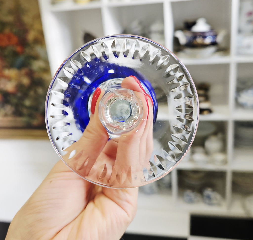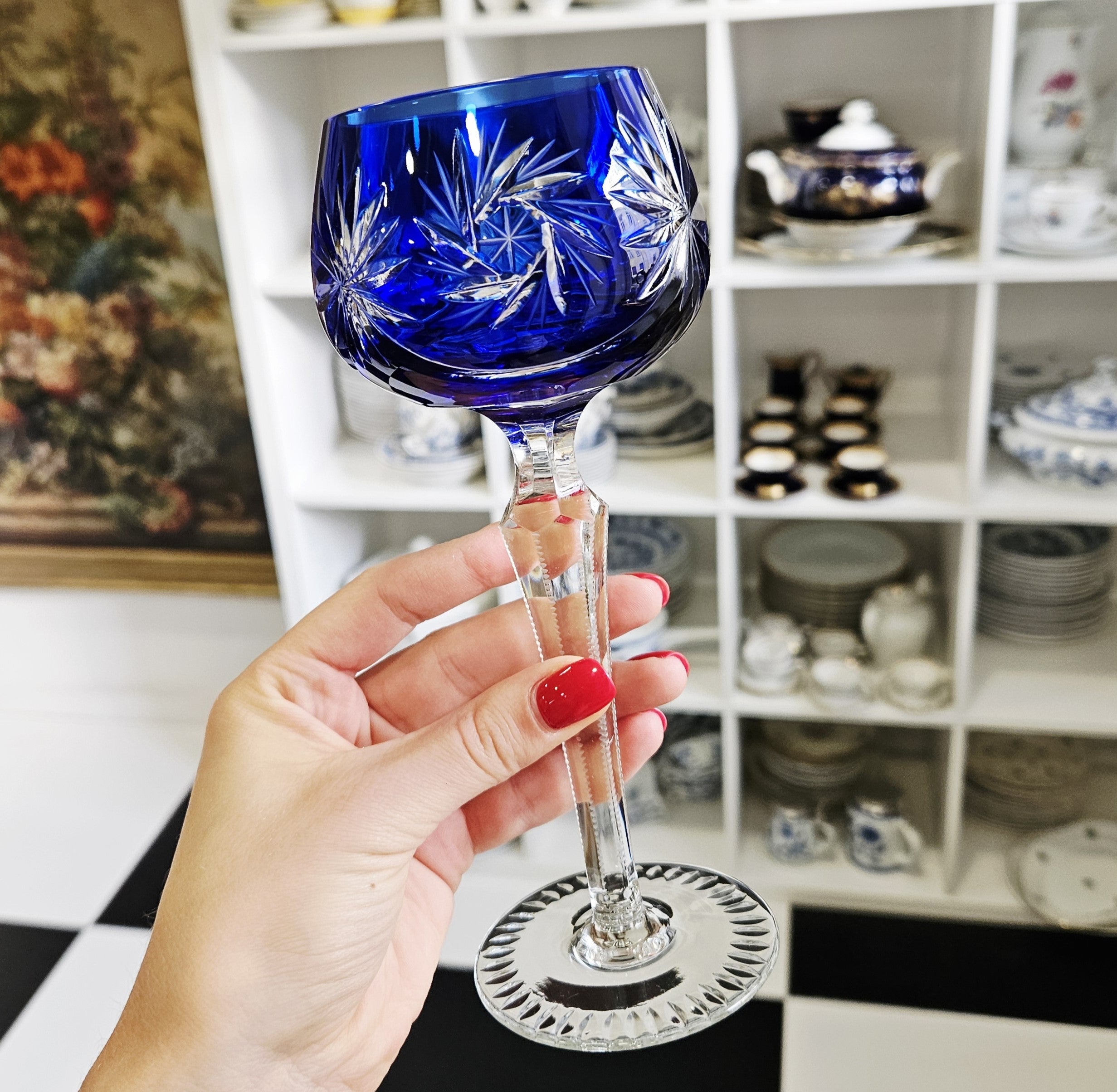 1 Stück. Kristall, handgeschnitzt, blaues Weinglas. (180ml.) – meinantik.de