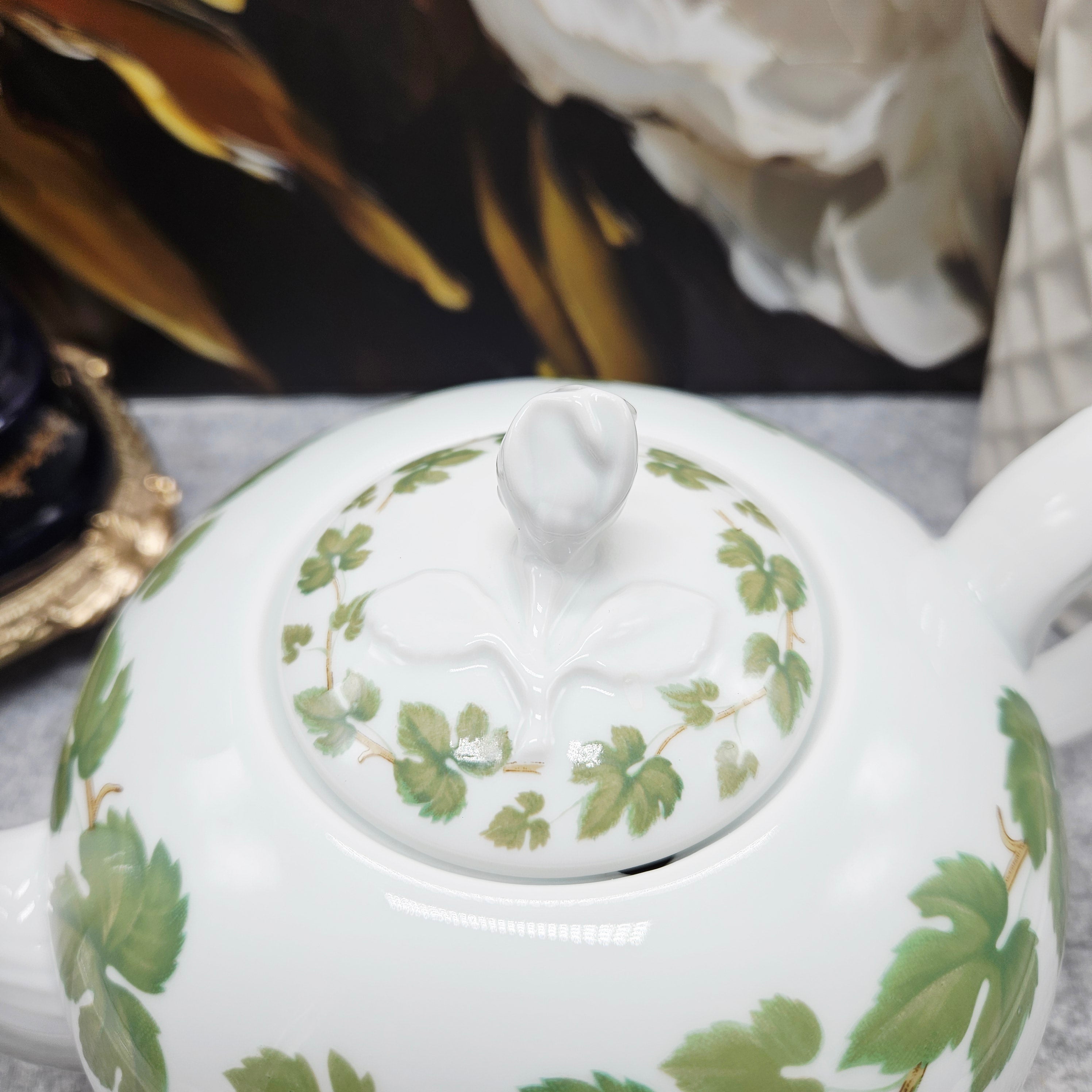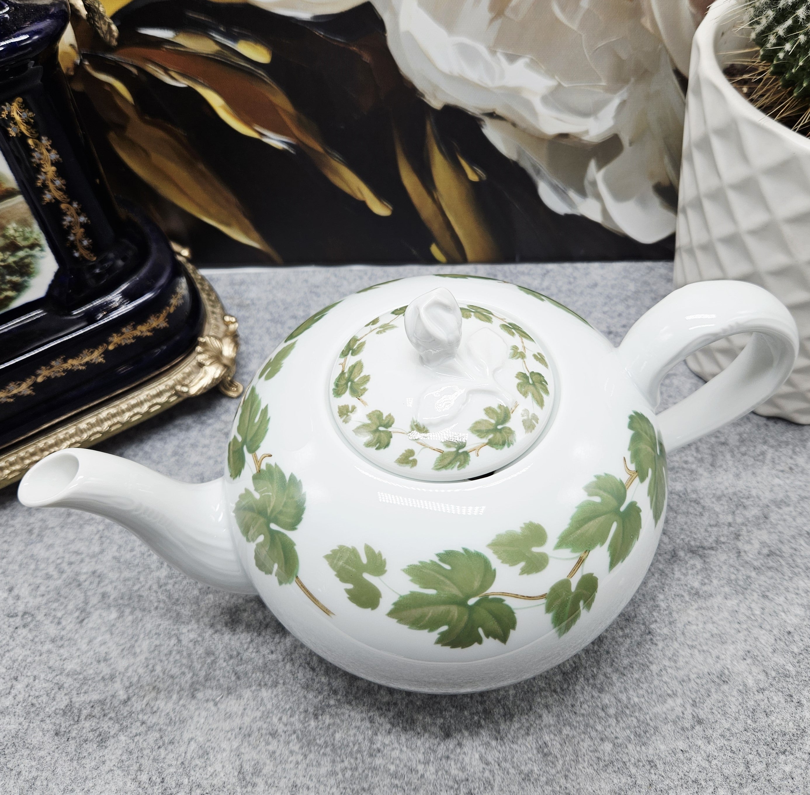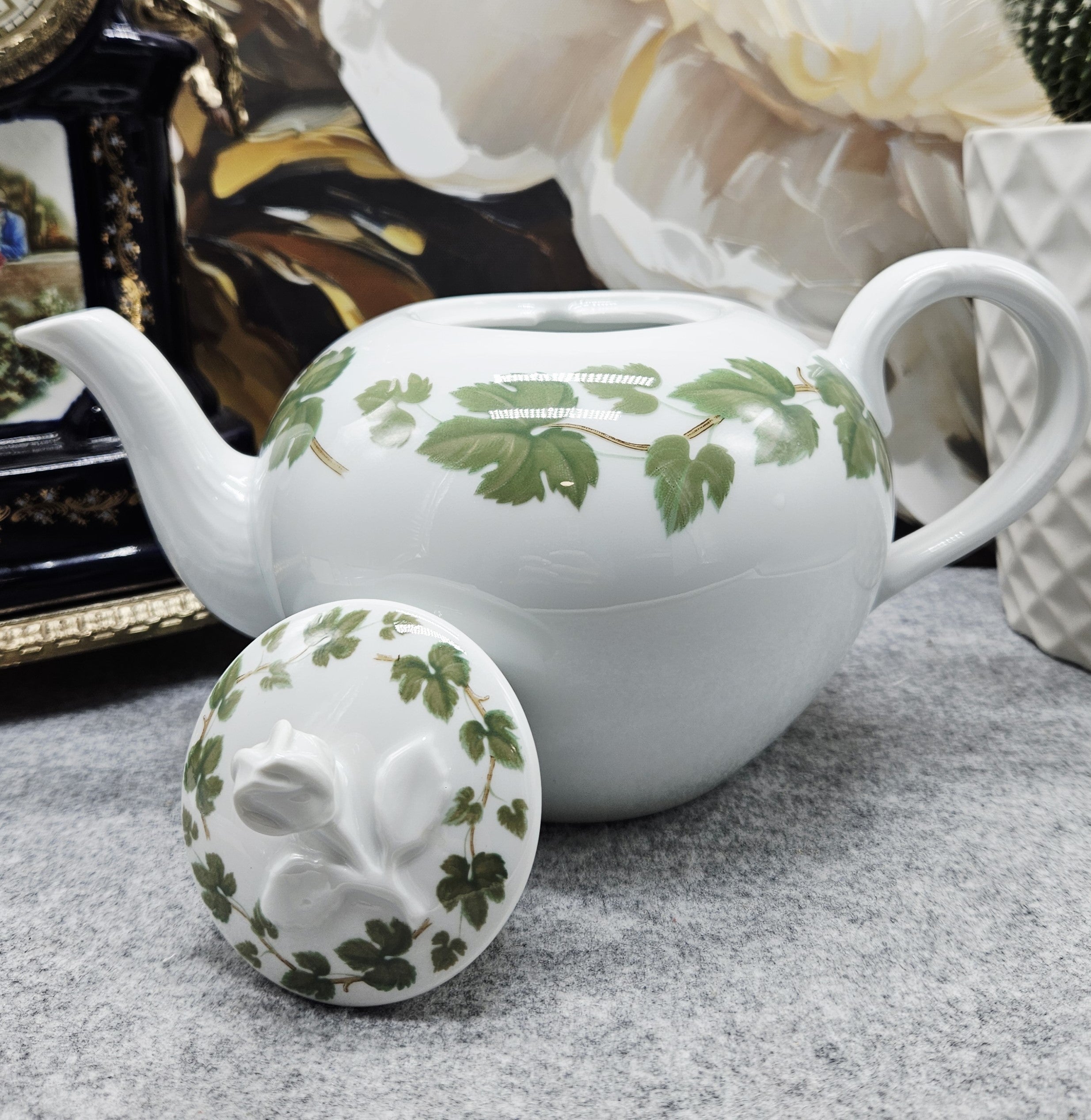 1Stk. "Hutschenreuther Porzellan-Teekanne mit grünem Blattdekor (1,3 l) ist auf Lager und wird versandt, sobald es wieder verfügbar ist