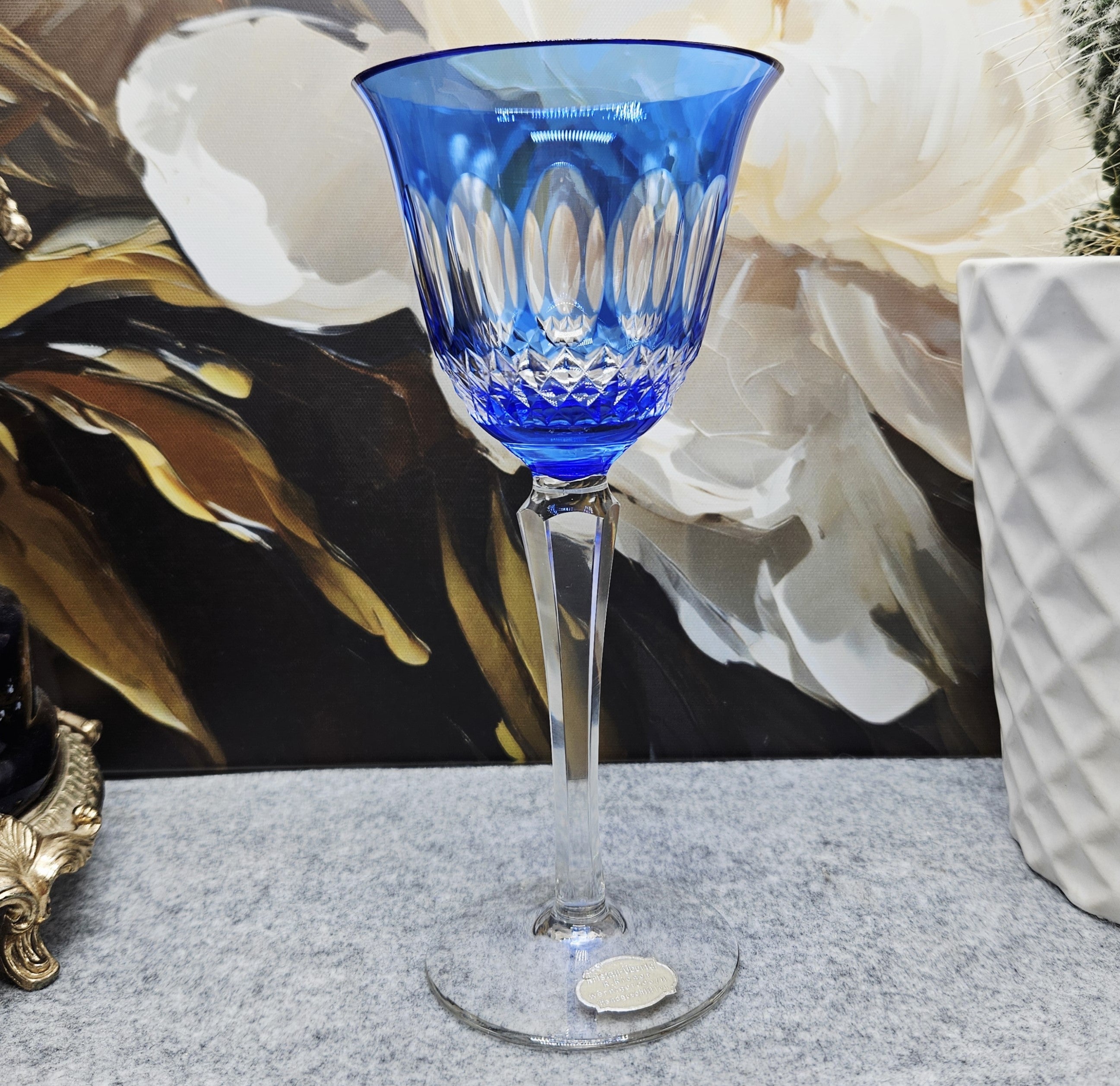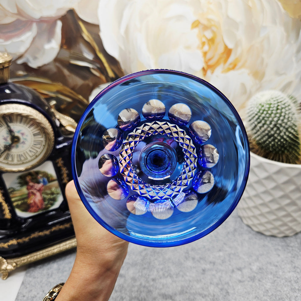 1Stück. Eleganter handgeschnitzter blauer tulpenförmiger Kristallkelch (170ml) ist auf Lager und wird versandt, sobald es wieder verfügbar ist