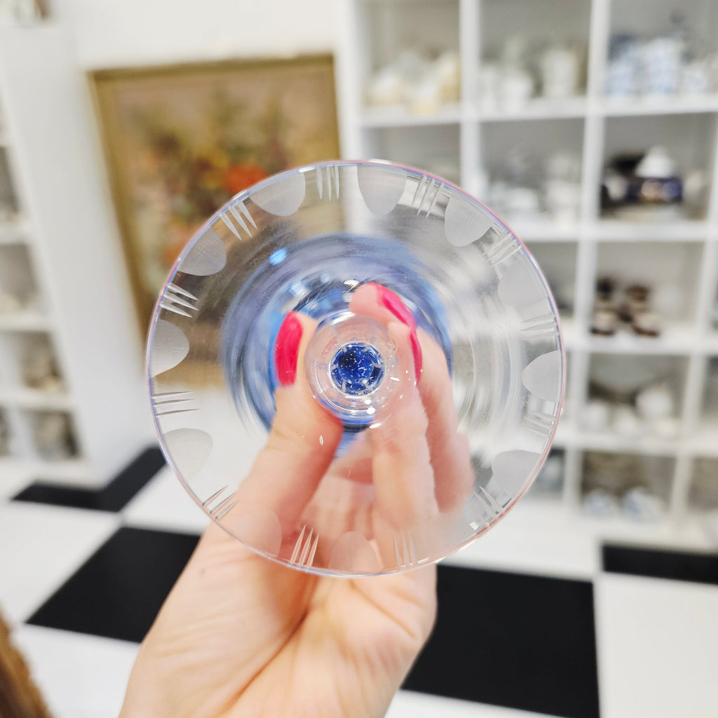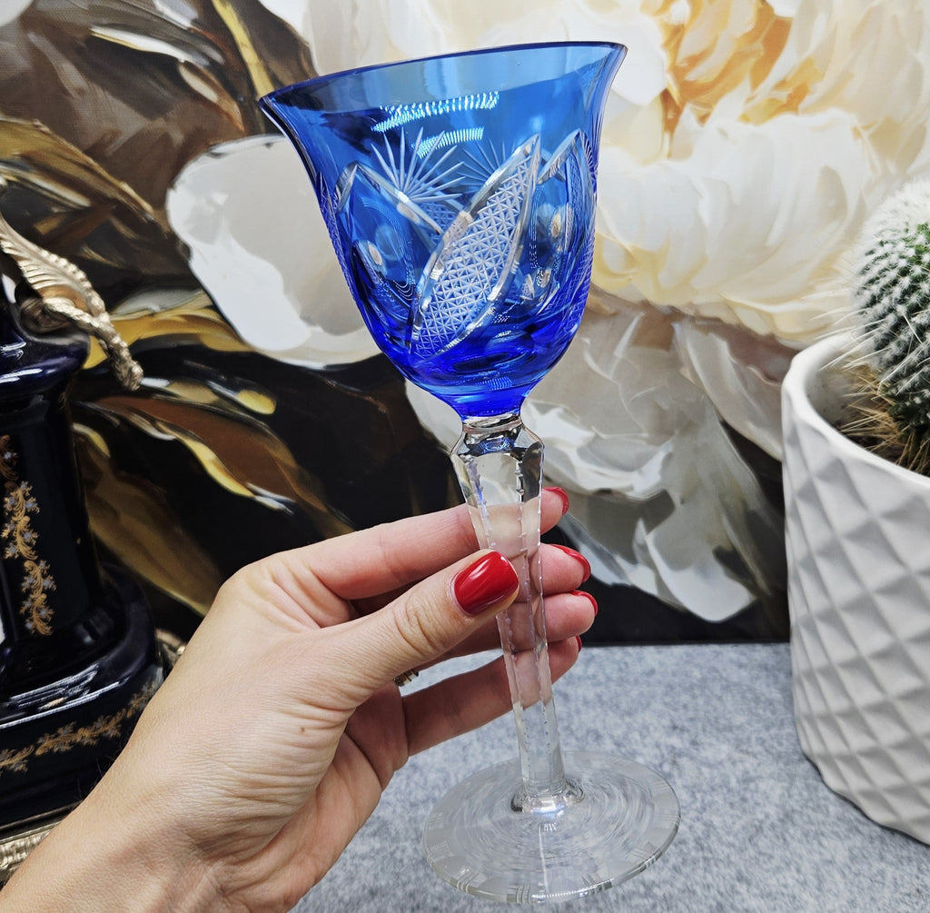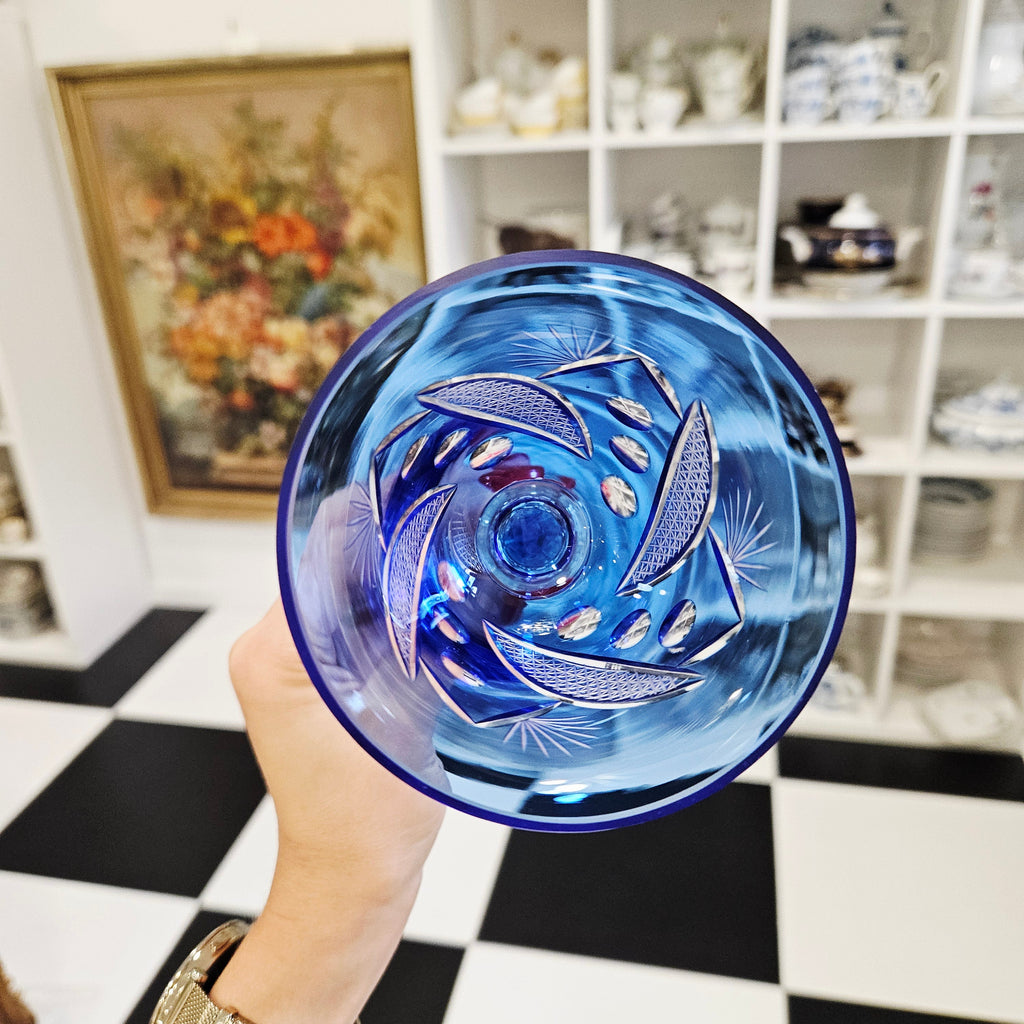 1Stück. Eleganter handgeschnitzter blauer tulpenförmiger Kristallkelch – meinantik.de