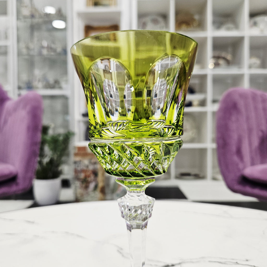 1Stück. Kristall, handgeschnitzt, hellgrüner Kristallkelch. (180ml.) – meinantik.de