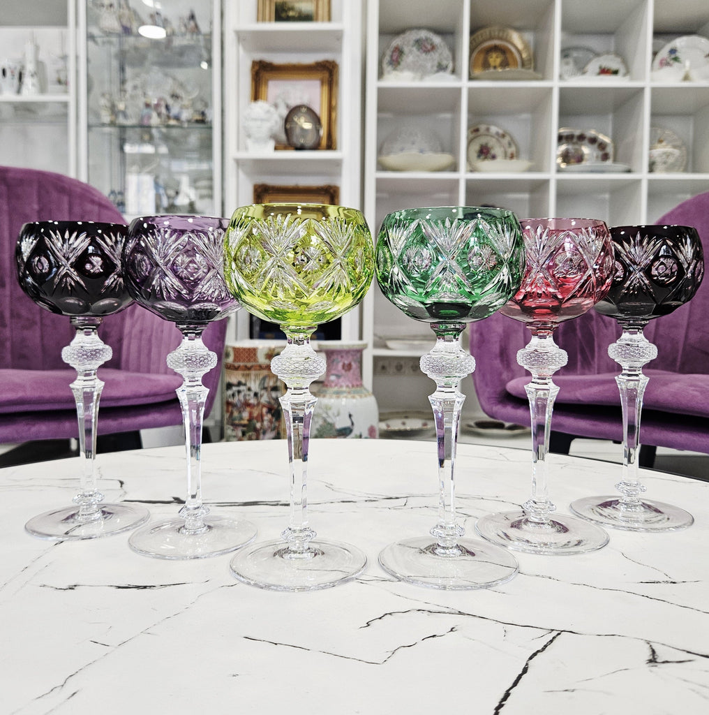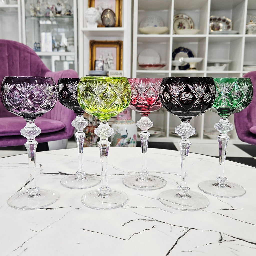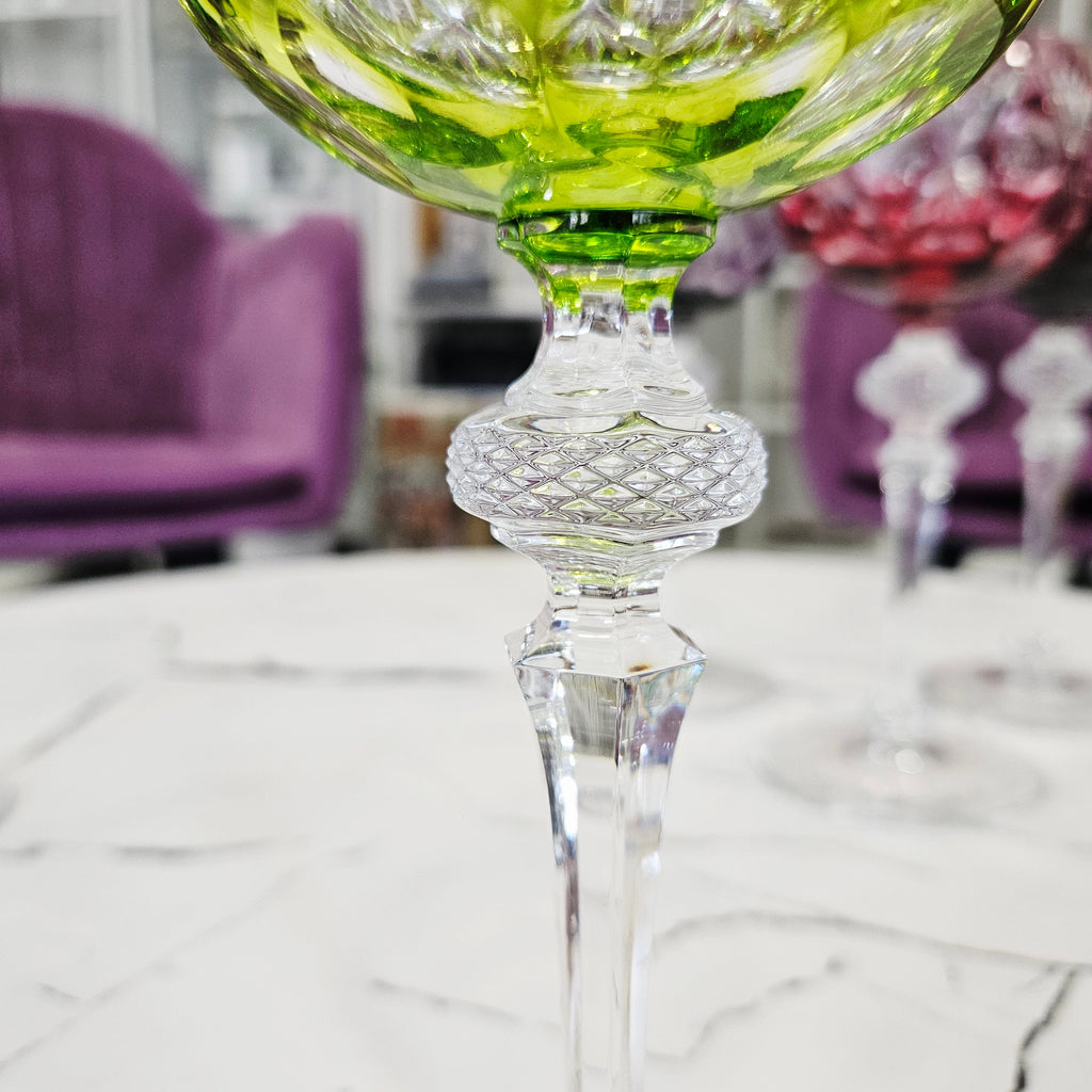 6 Stück. Sehr seltene, beeindruckende, große WMF Cristal Cabinet farbige Kristallgläser (220ml.)