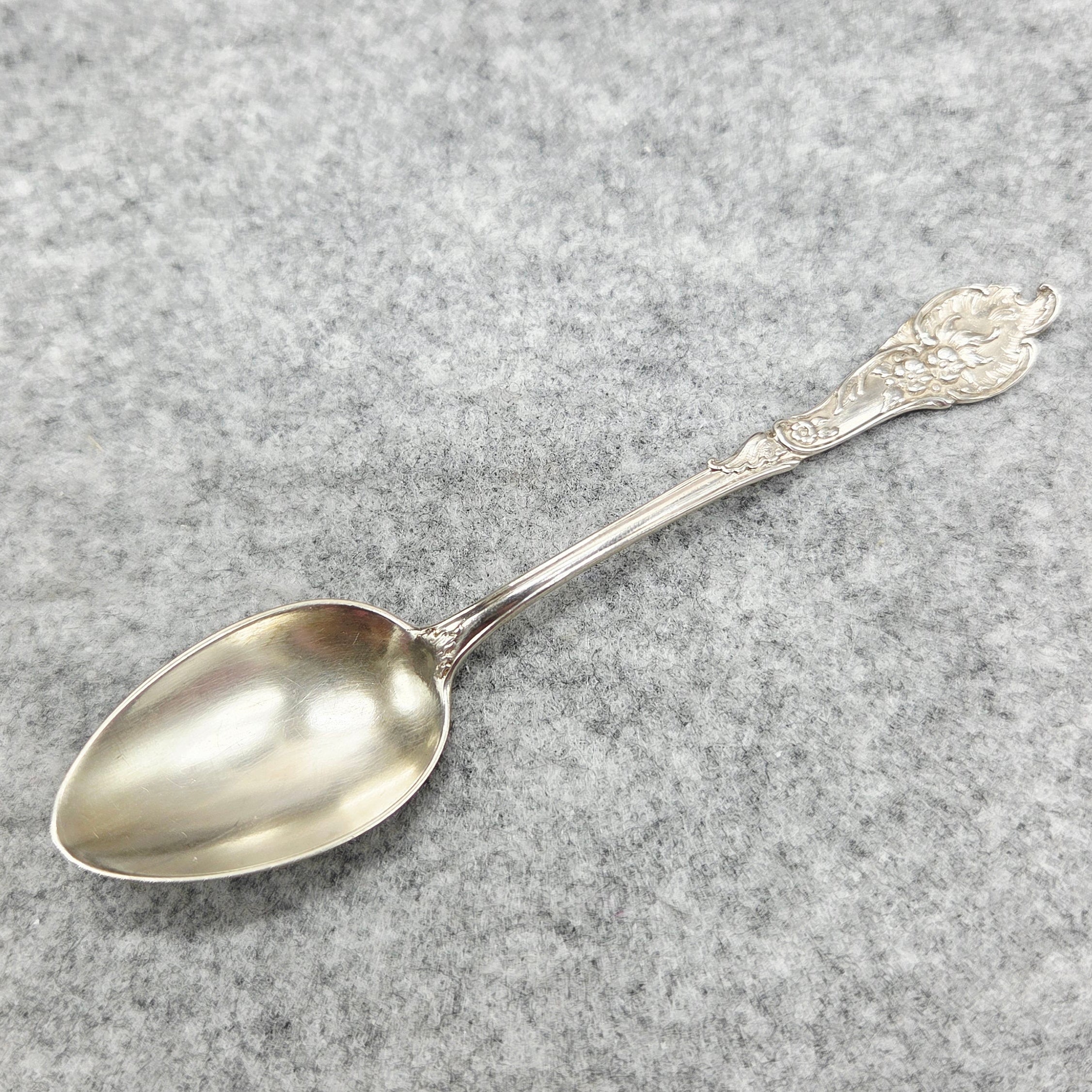 Ein exklusives Set von 6 Silberlöffeln aus 800er Feinsilber, mit raffiniertem Design und subtilem Luxus. Jeder Löffel ist mit detaillierten, ornamentalen Griffen mit klassischen Blumen- und Rokoko-Motiven verziert - ein wahres Beispiel für die Schmuckkunst der alten Welt.