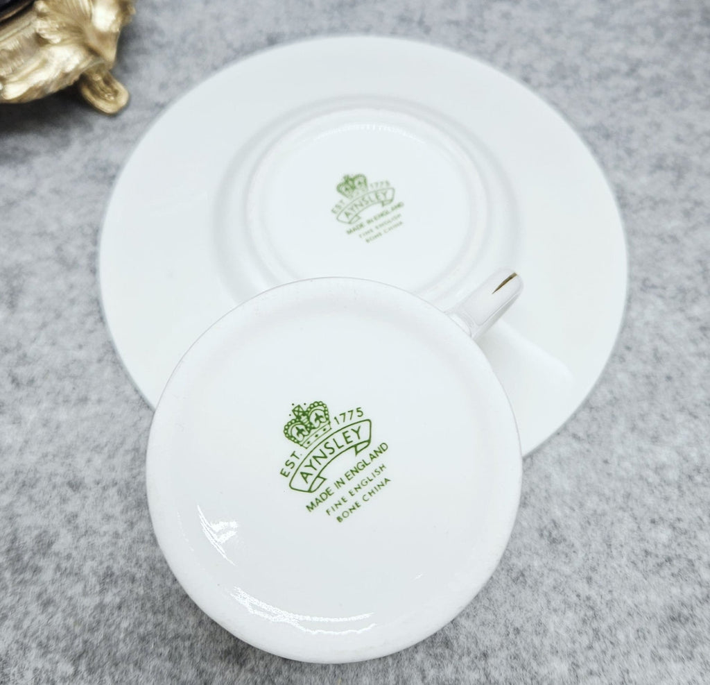 Die Kronenmarkierung auf dem Sockel weist darauf hin, dass es sich um ein Produkt der 1775 gegründeten Aynsley Manufactory handelt, einer der renommiertesten Porzellanmanufakturen Englands, die in England aus feinstem Knochenporzellan hergestellt wird, das für seine Leichtigkeit, Klarheit und Haltbarkeit bekannt ist.